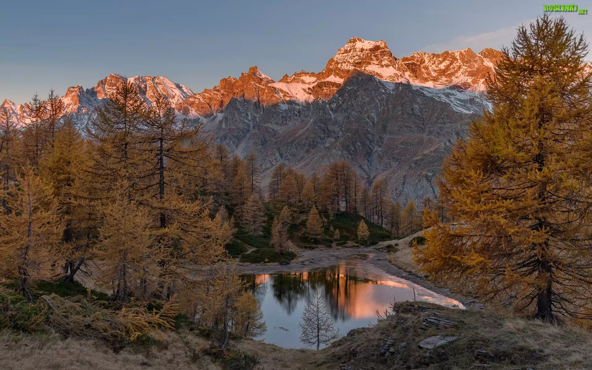 Rośliny: Jesień, Drzewa, Góry, Jezioro