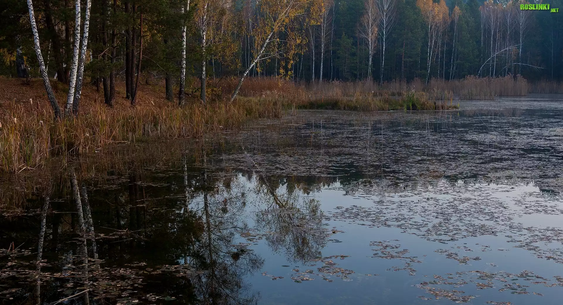 Rośliny: Jesień, Las, Drzewa, Brzozy, Jezioro, Odbicie