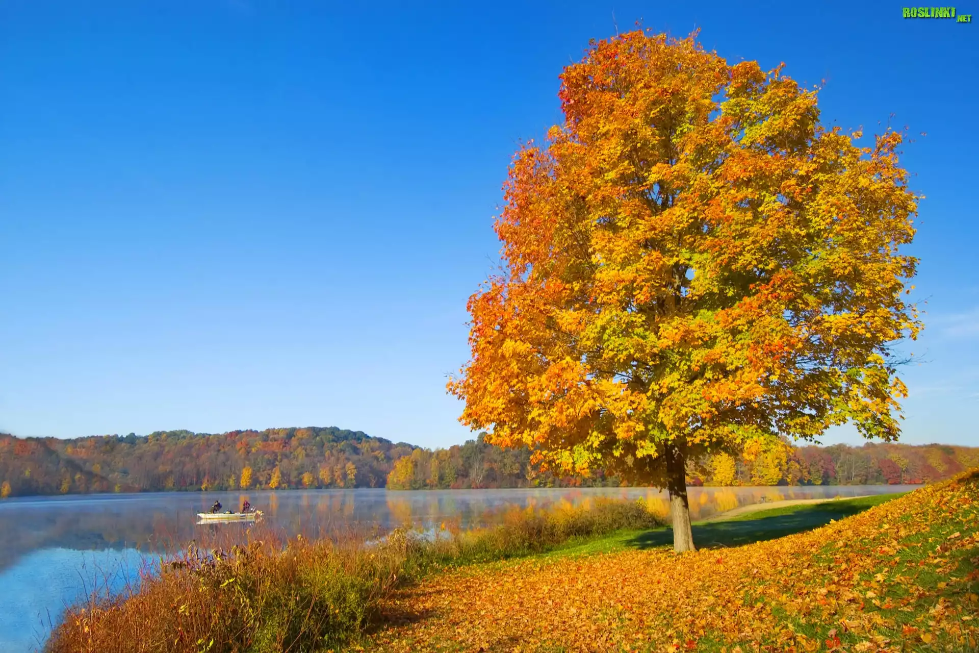 Rośliny: Jesień, Drzewo, Jezioro, Liście