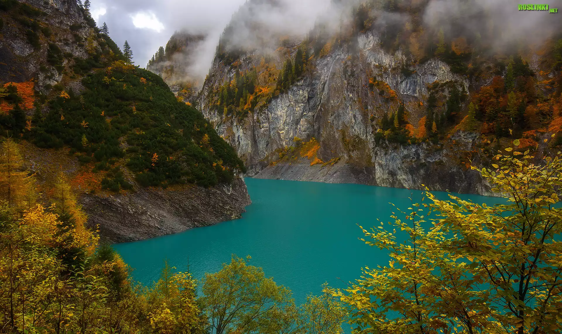 Rośliny: Jesień, Góry, Mgła, Jezioro, Drzewa