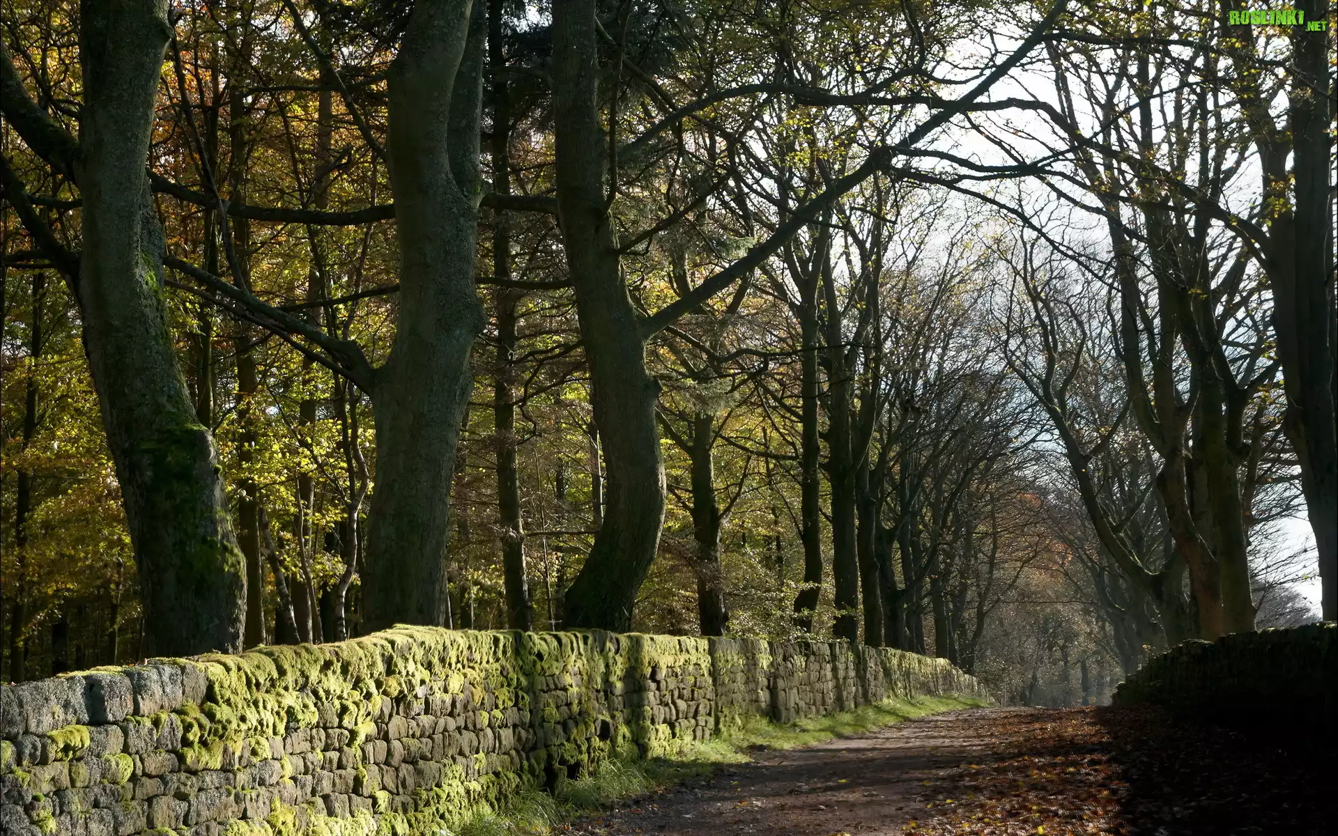 Rośliny: Jesień, Droga, Drzewa, Kamienny, Mur