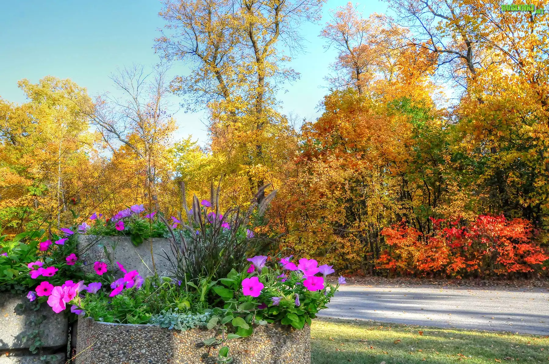 Rośliny: Jesień, Drzewa, Klomb, Surfinie