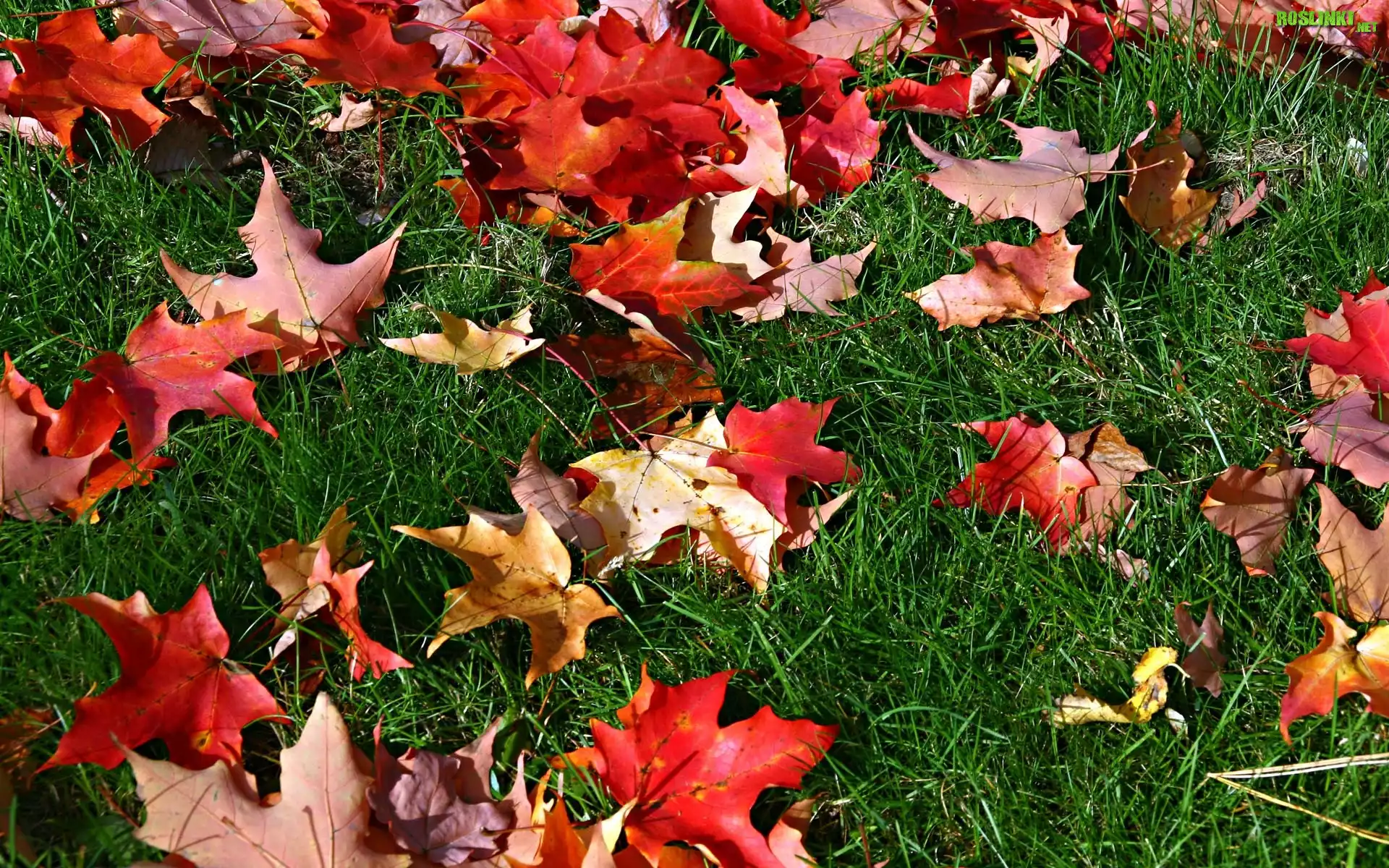 Rośliny: Jesień, Liście, Klon, Trawa