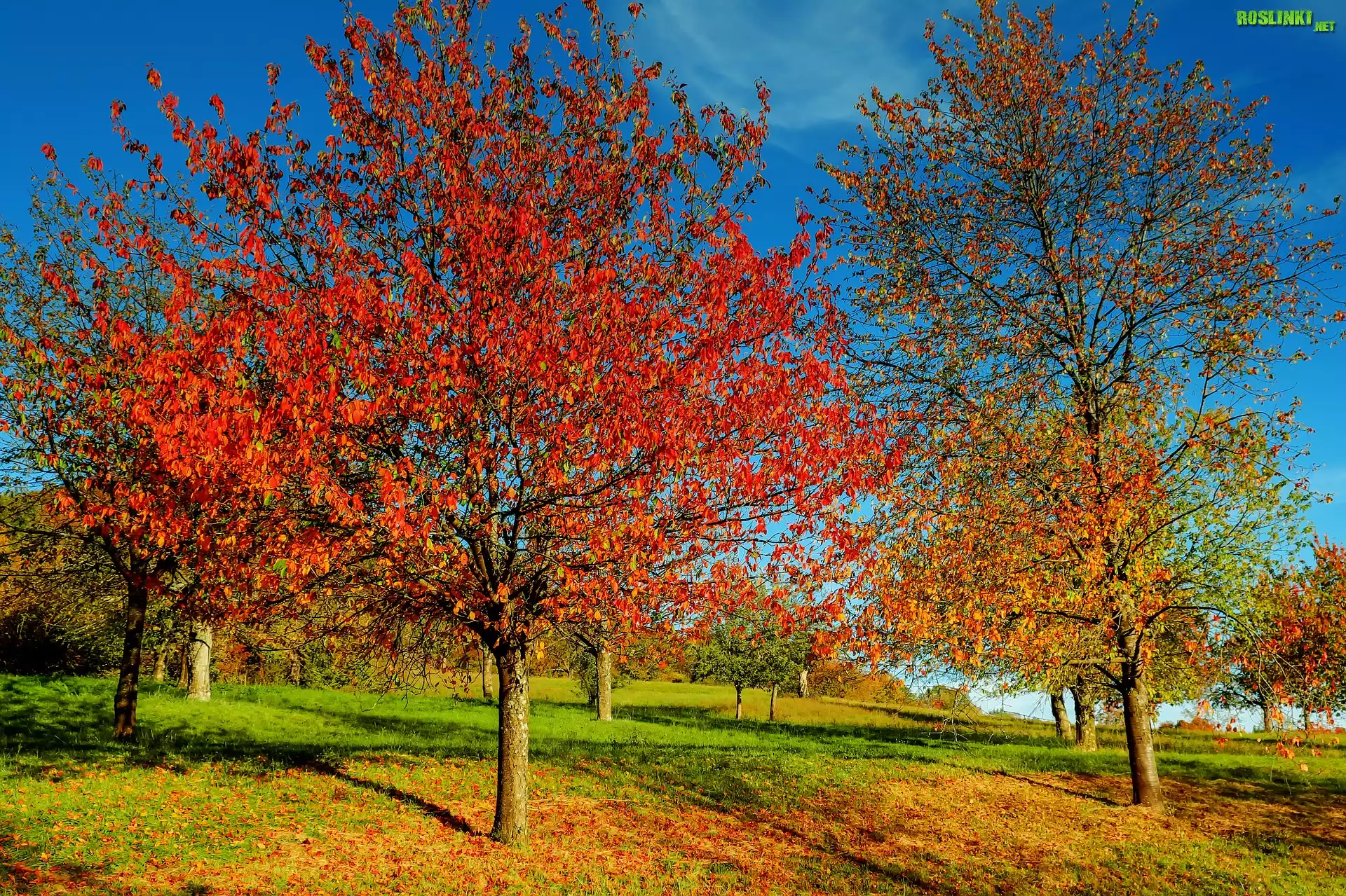 Rośliny: Jesień, Drzewa, Trawa, Kolorowe, Liście