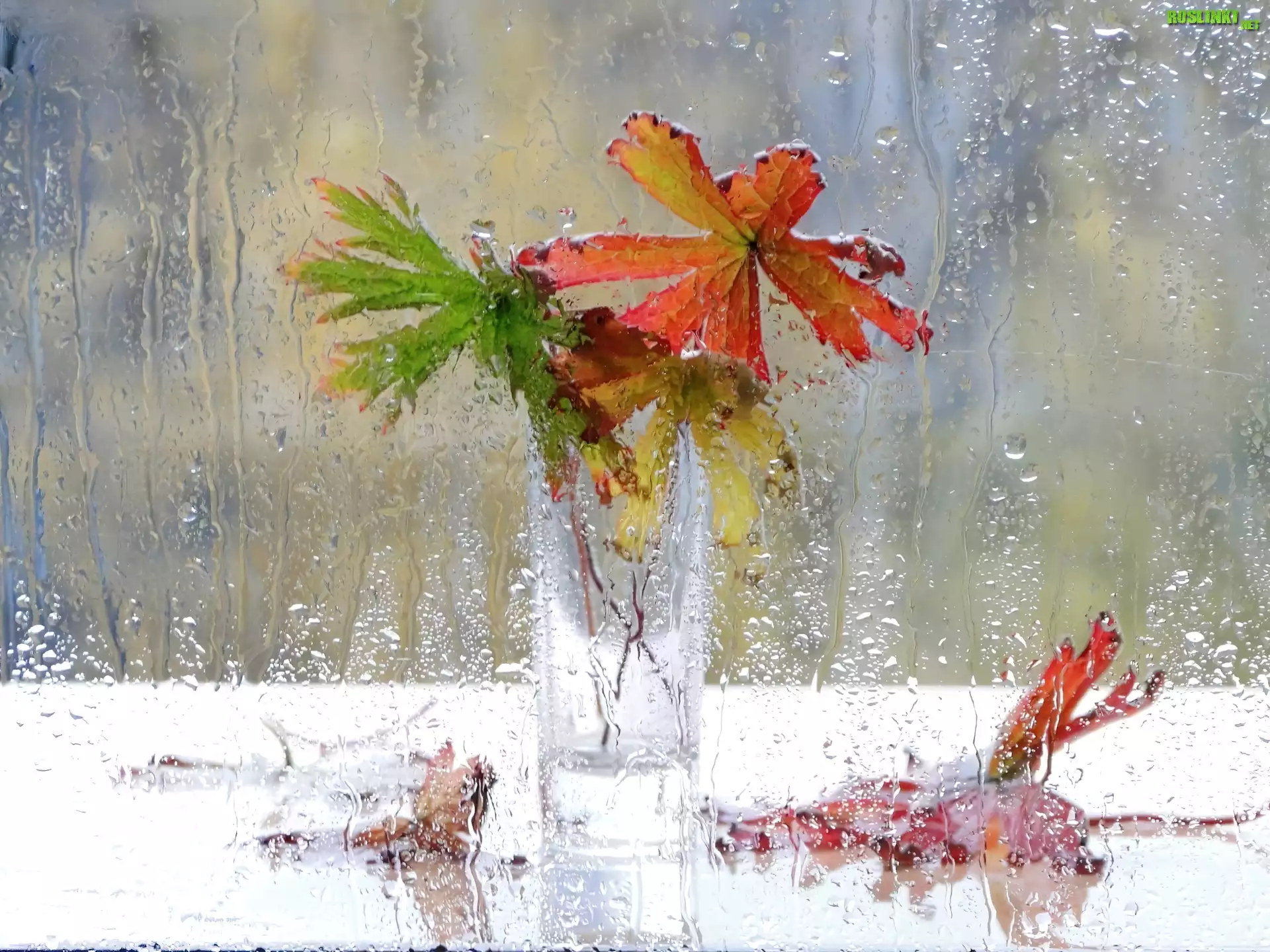 Rośliny: Jesień, Liście, Deszcz, Krople, Wazon
