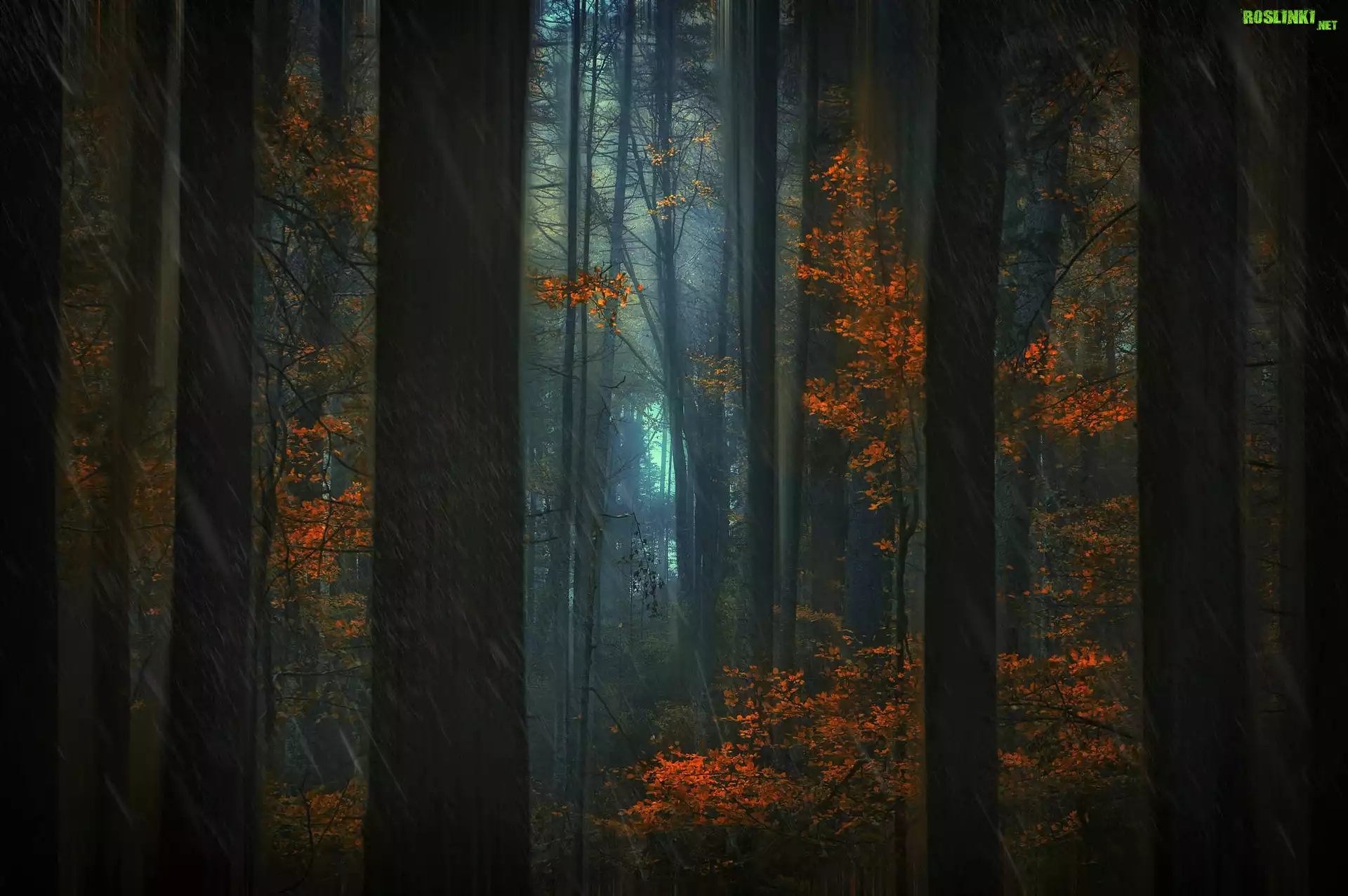 Rośliny: Jesień, Deszcz, Las, Drzewa