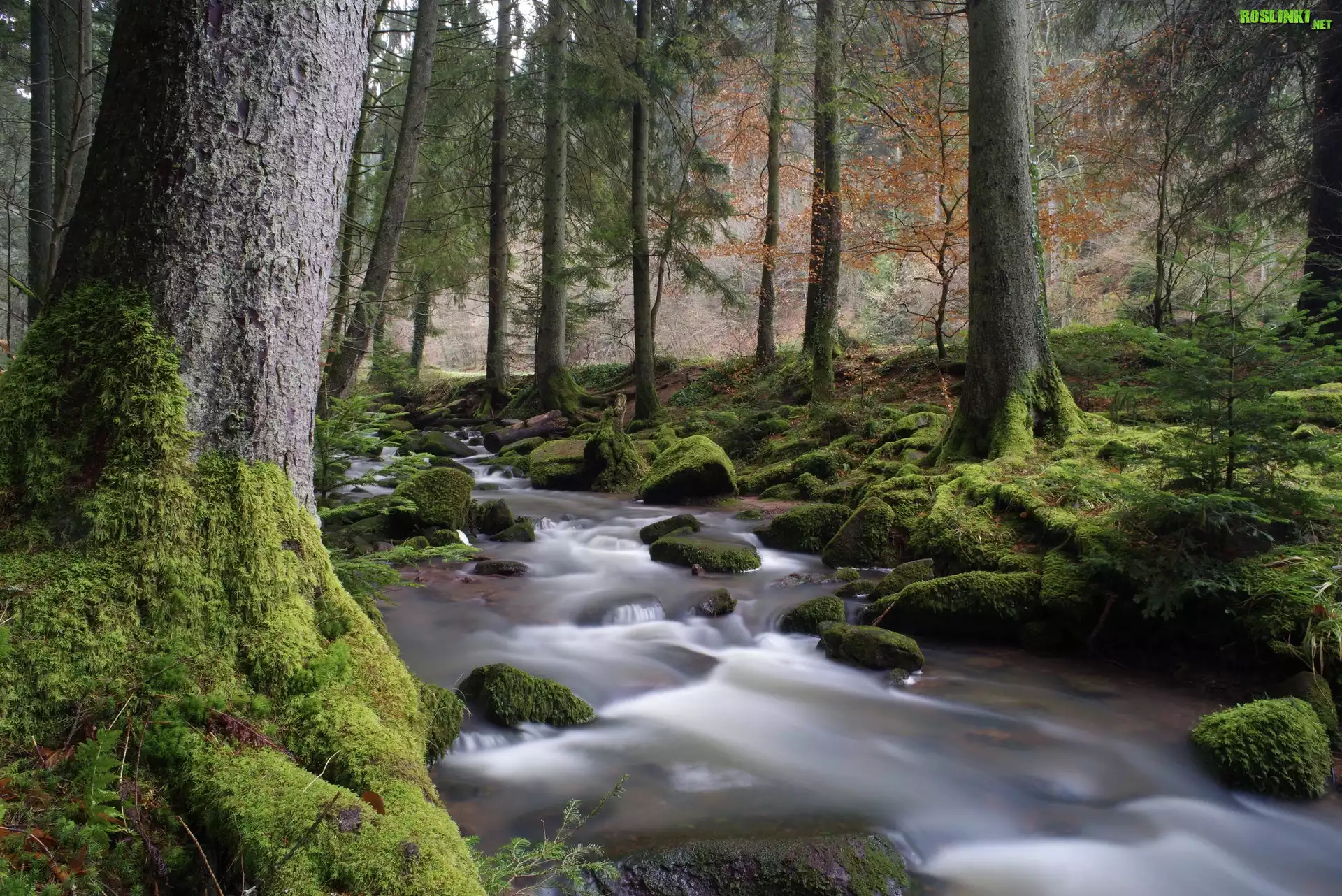 Rośliny: Las, Jesień, Omszałe, Drzewa, Kamienie, Potok, Rzeczka