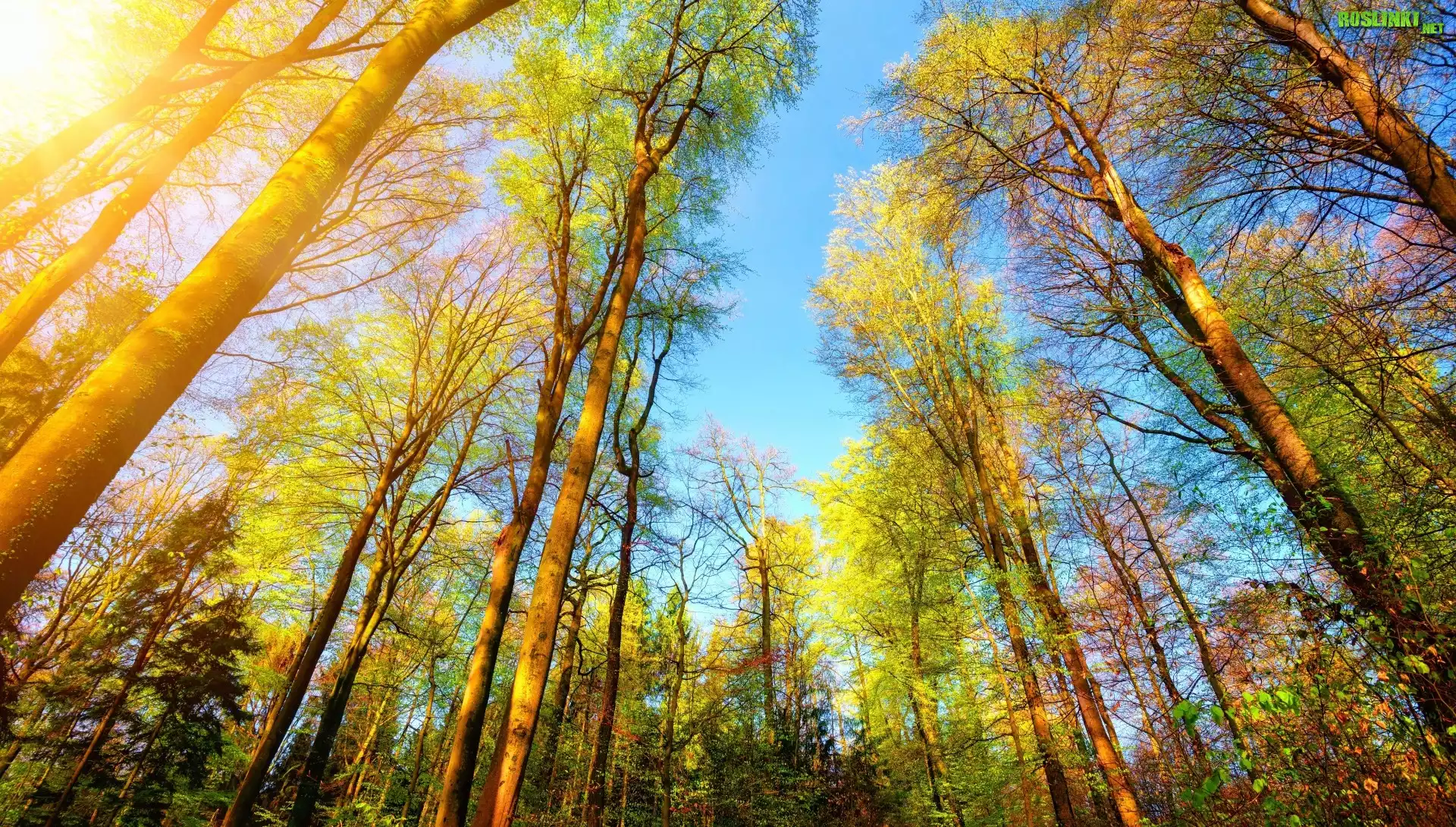 Rośliny: Jesień, Promienie słońca, Las, Drzewa