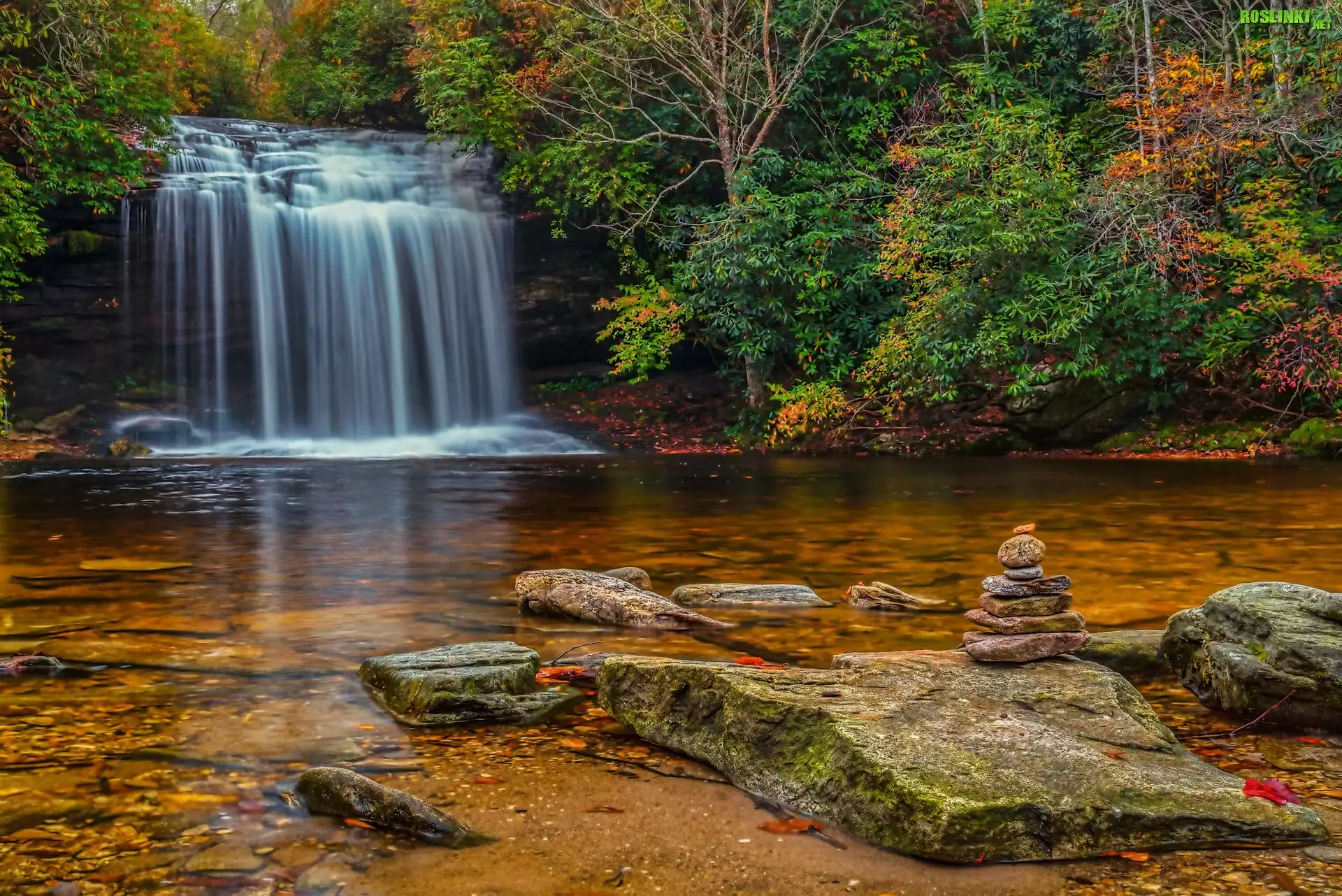 Rośliny: Jesień, Rzeka, Wodospad, Kamienie, Las, Drzewa