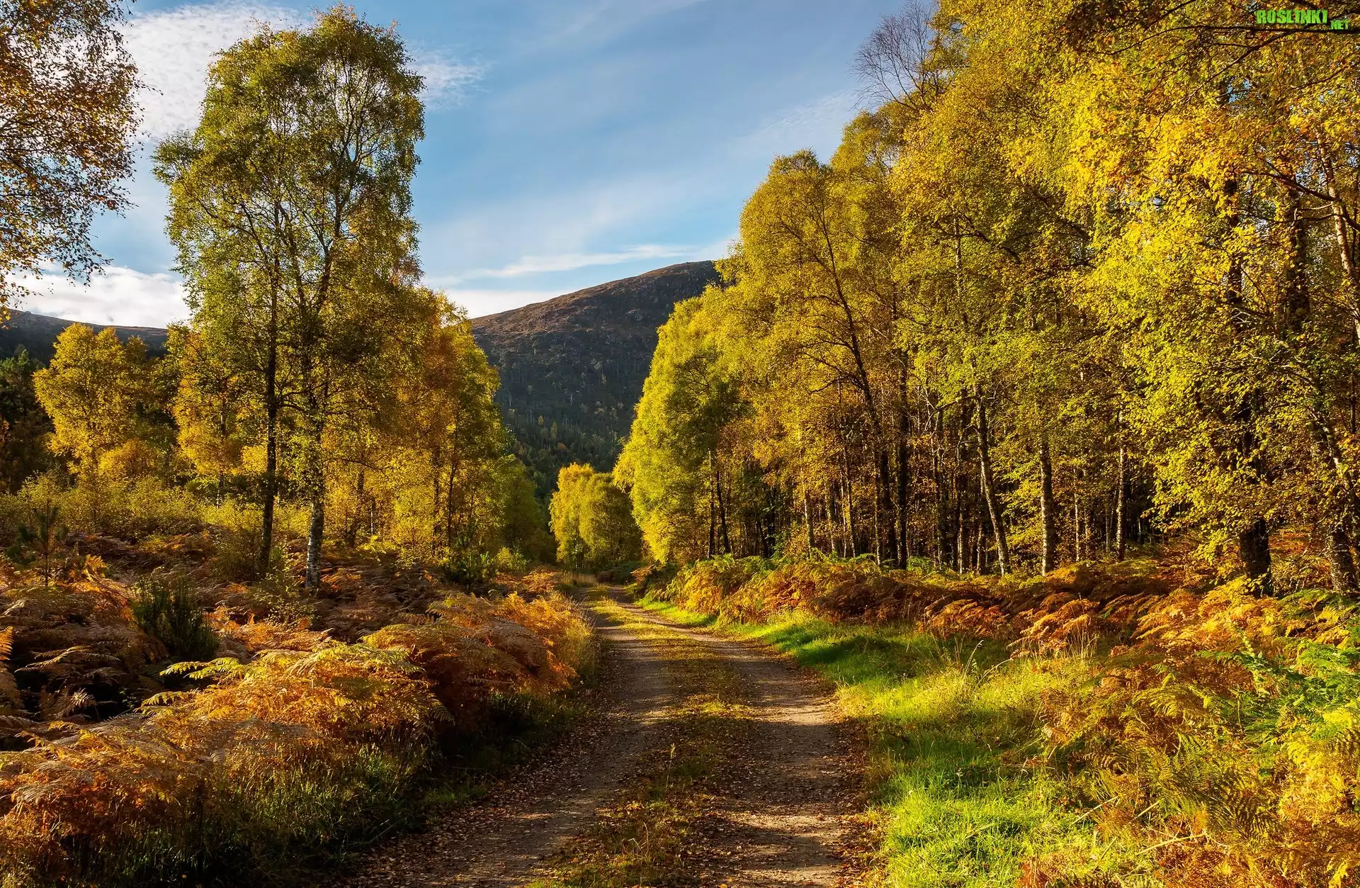 Rośliny: Jesień, Droga, Drzewa, Lasy, Wzgórza
