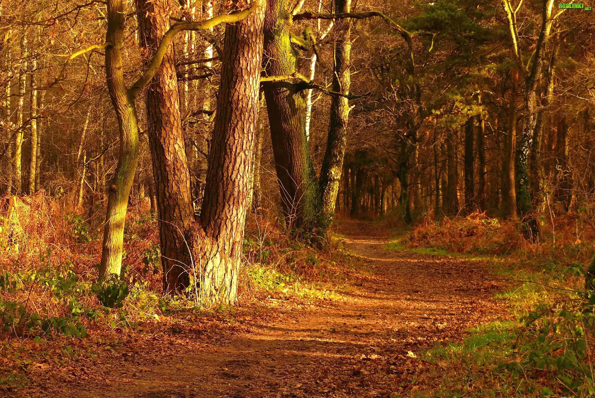 Rośliny: Jesień, Drzewa, Leśna, Droga