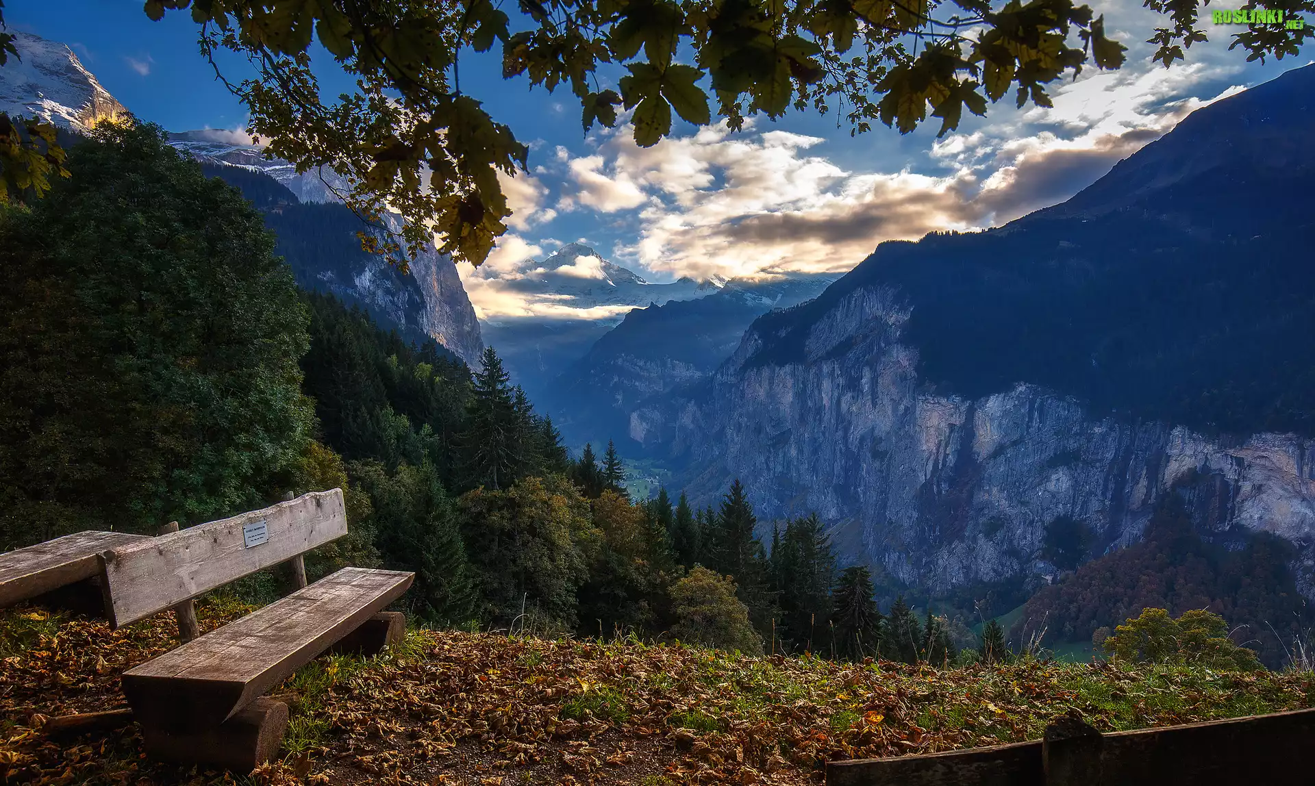 Rośliny: Jesień, Góry, Ławka, Liście, Drzewa