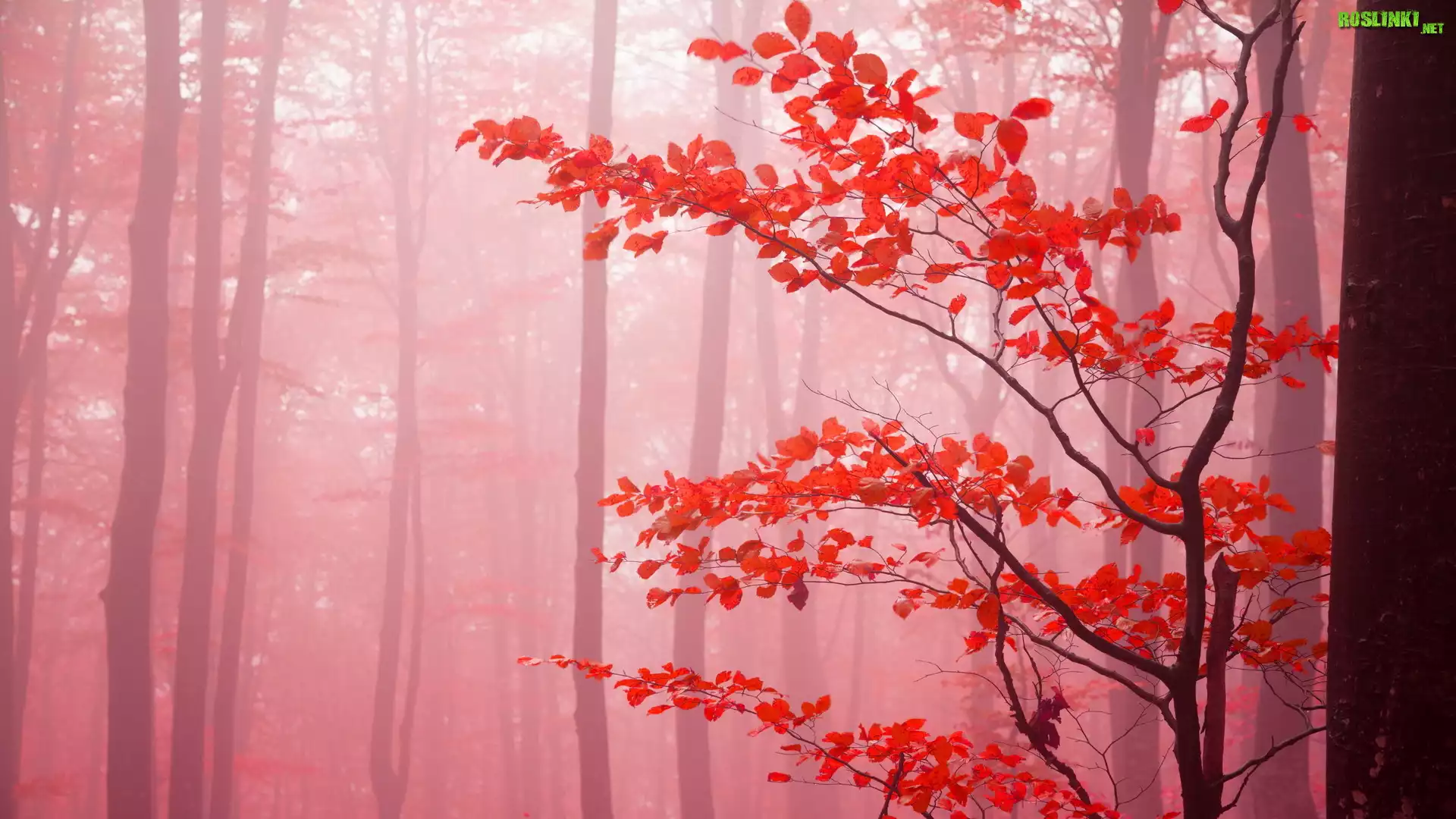 Rośliny: Jesień, Las, Drzewa, Liście, Mgła