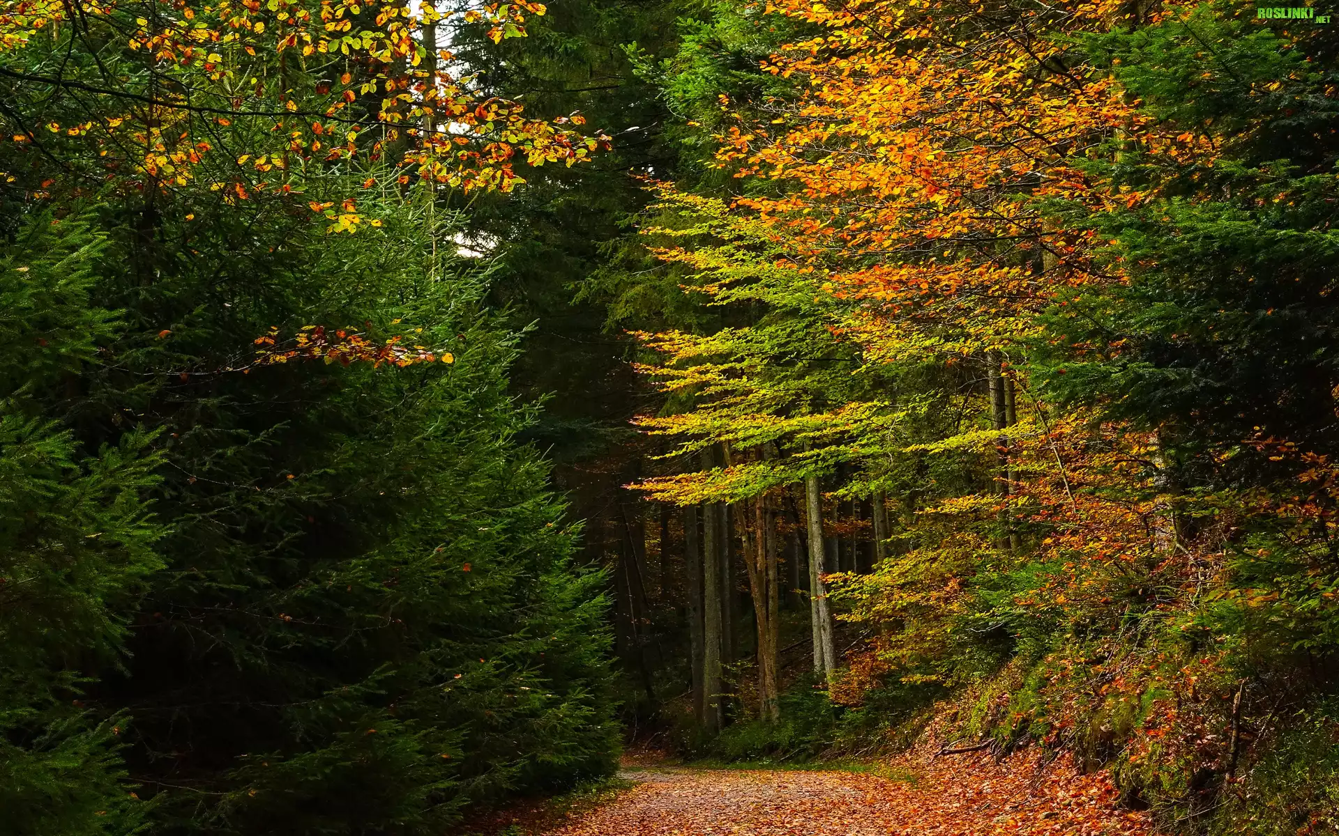 Rośliny: Jesień, Las, Drzewa, Opadłe, Liście, Ścieżka