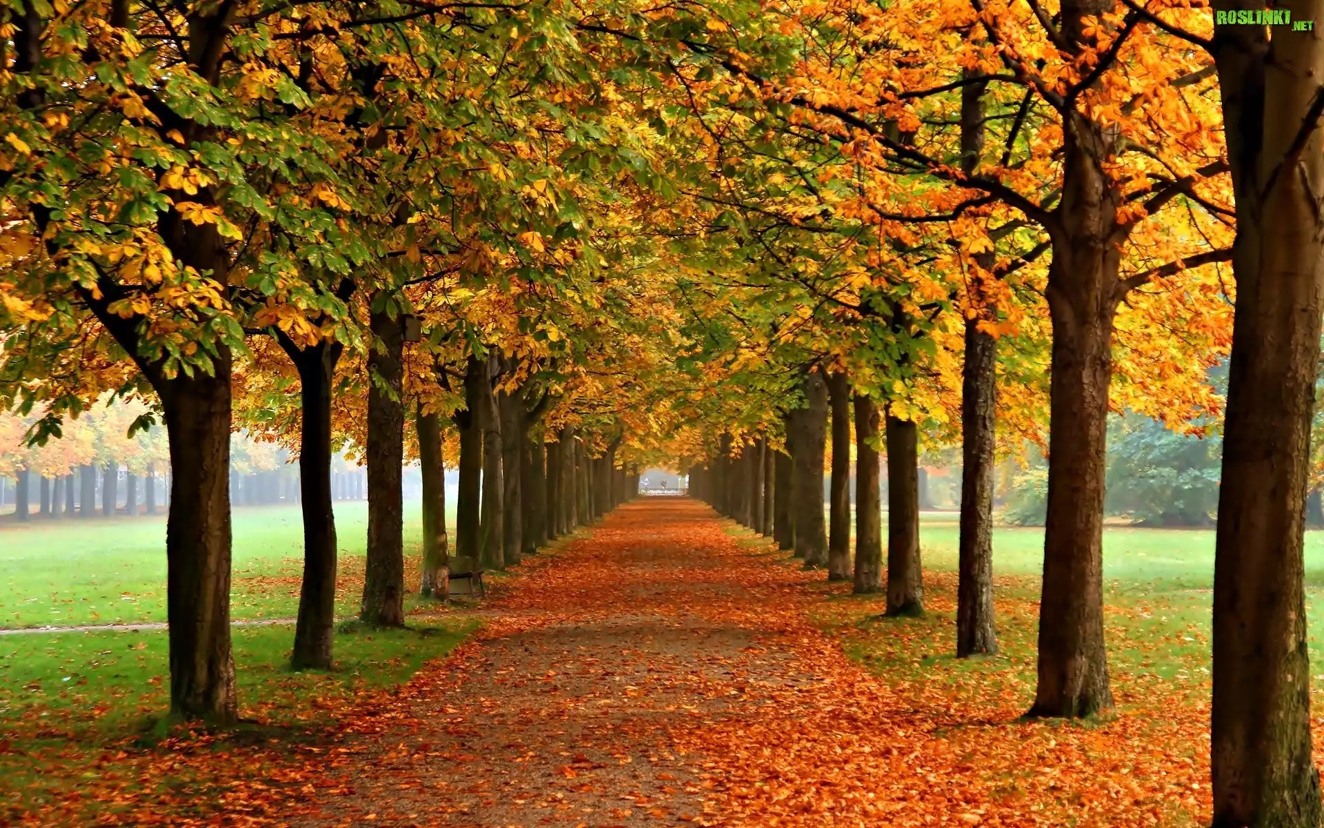 Rośliny: Jesień, Drzewa, Kasztany, Liście, Park