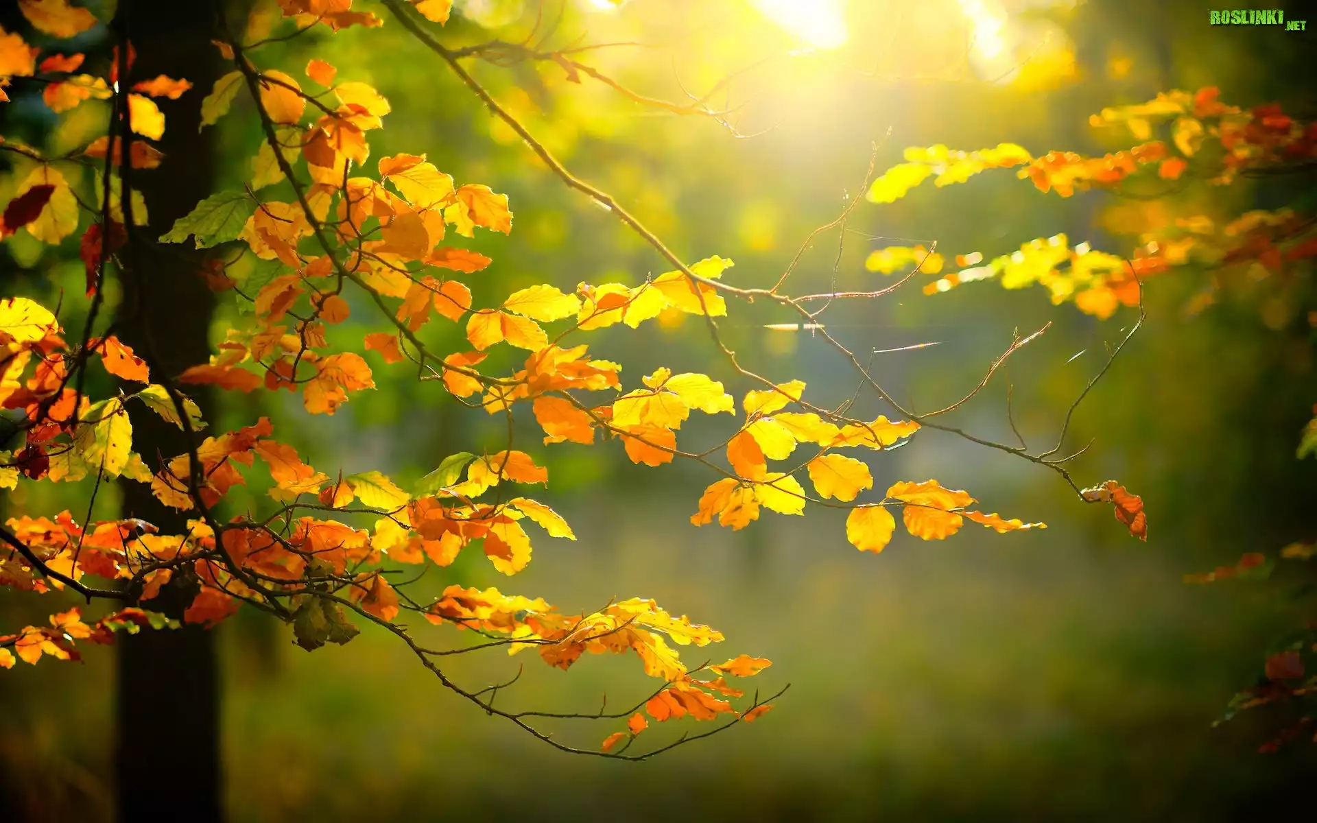 Rośliny: Jesień, Gałąź, Kolorowe, Liście, Rozświetlone