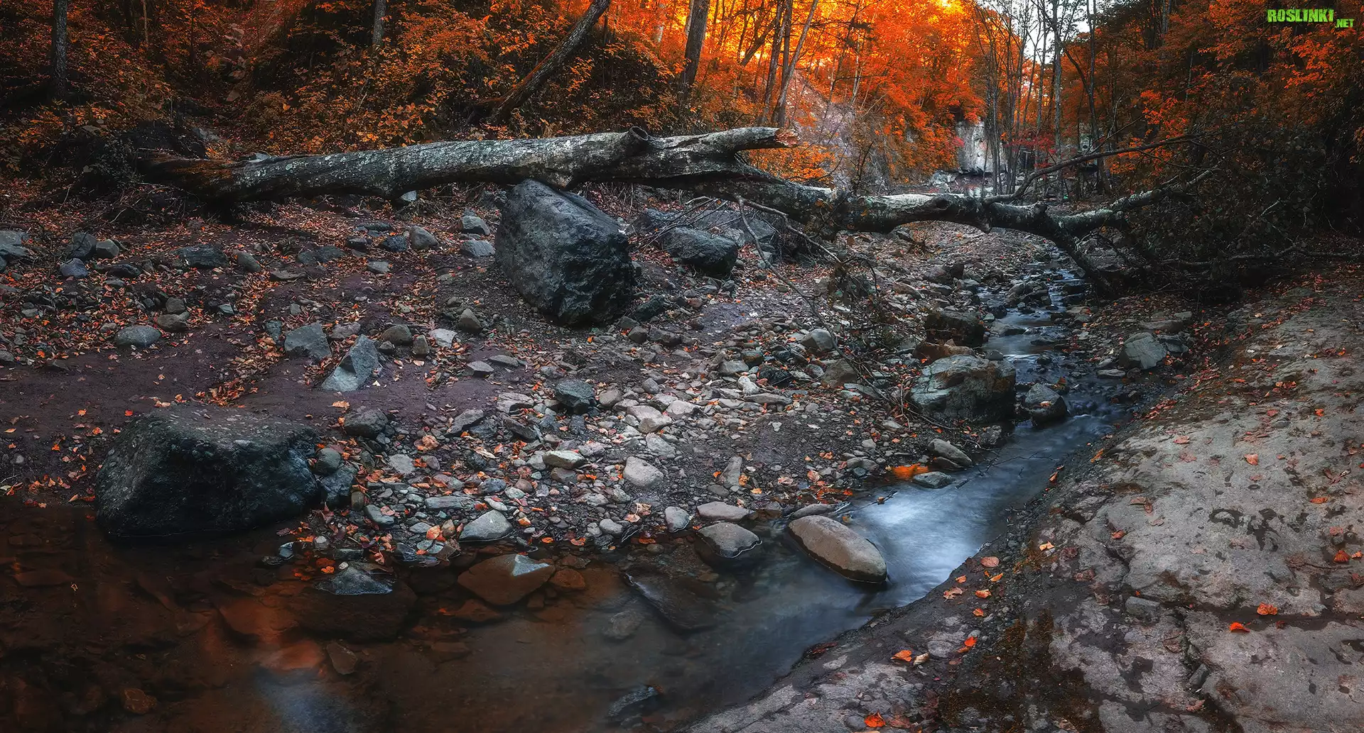 Rośliny: Las, Jesień, Strumyk, Rzeczka, Kamienie, Powalone, Drzewo, Liście