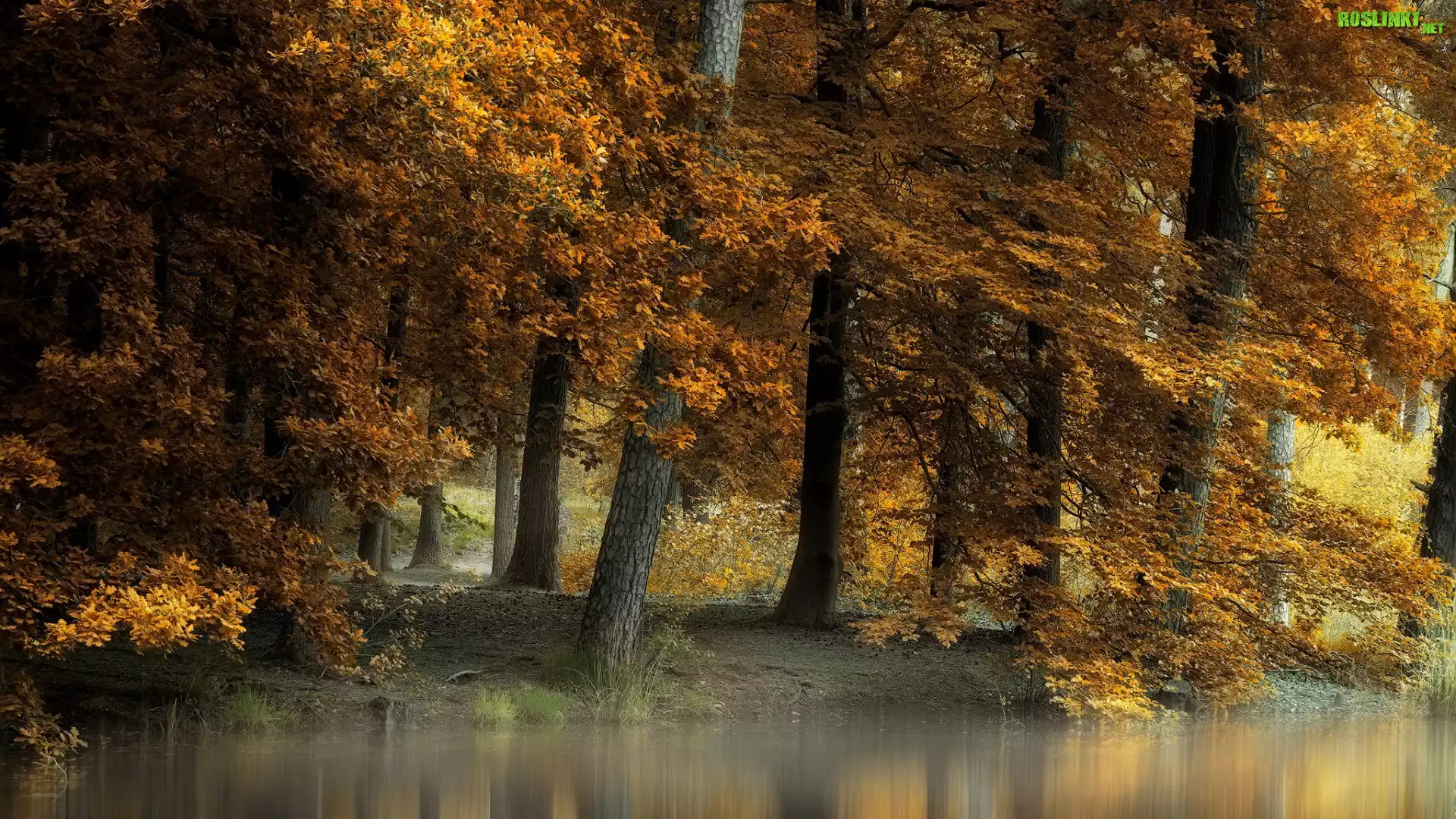 Rośliny: Jesień, Drzewa, Pożółkłe, Liście, Rzeka