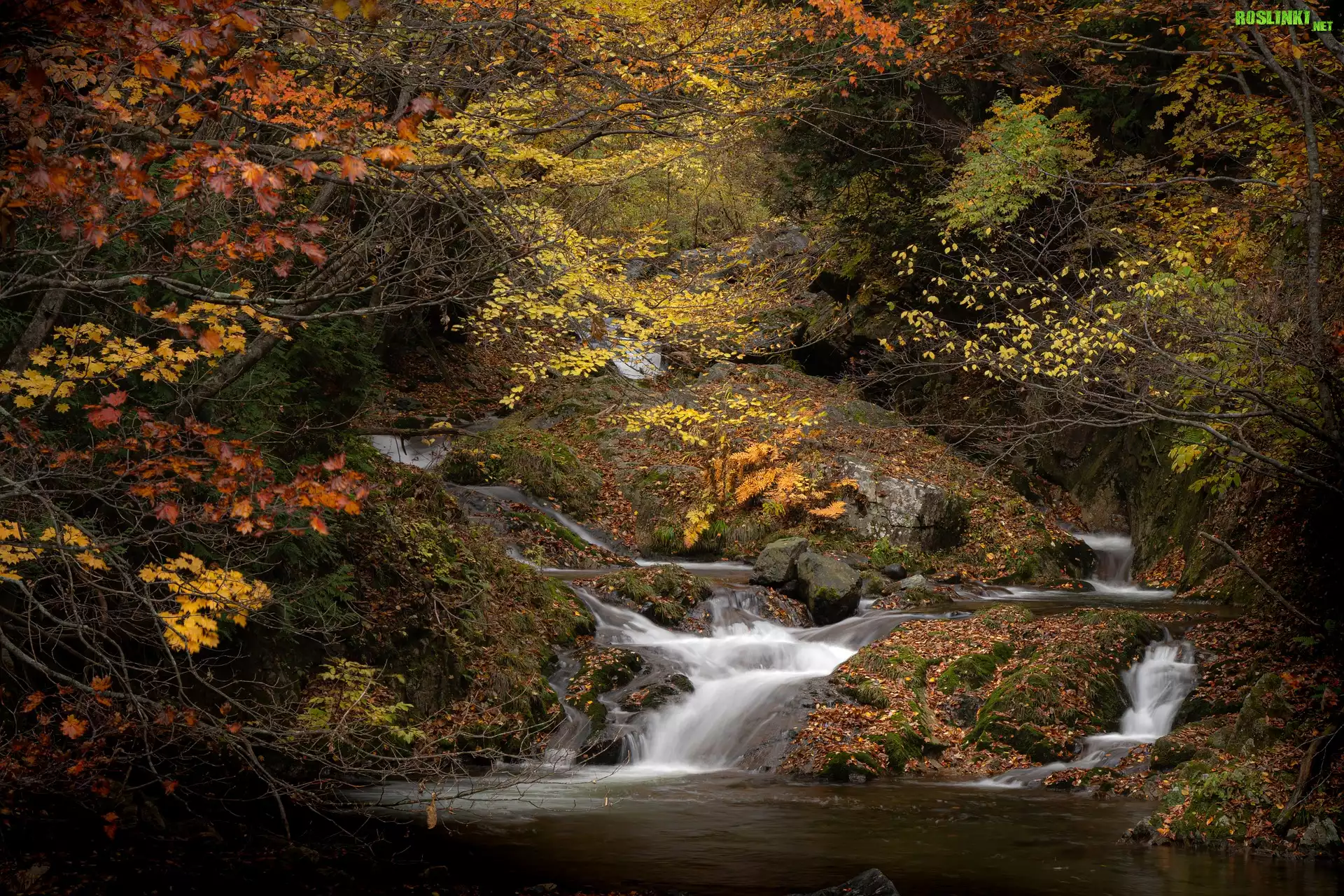 Rośliny: Drzewa, Las, Rzeka, Jesień, Potok, Liście