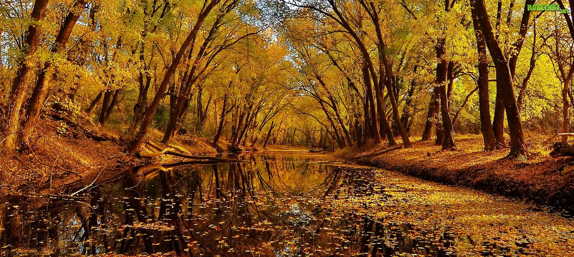 Jesień, Las, Rzeka, Opadłe, Liście, Odbicie