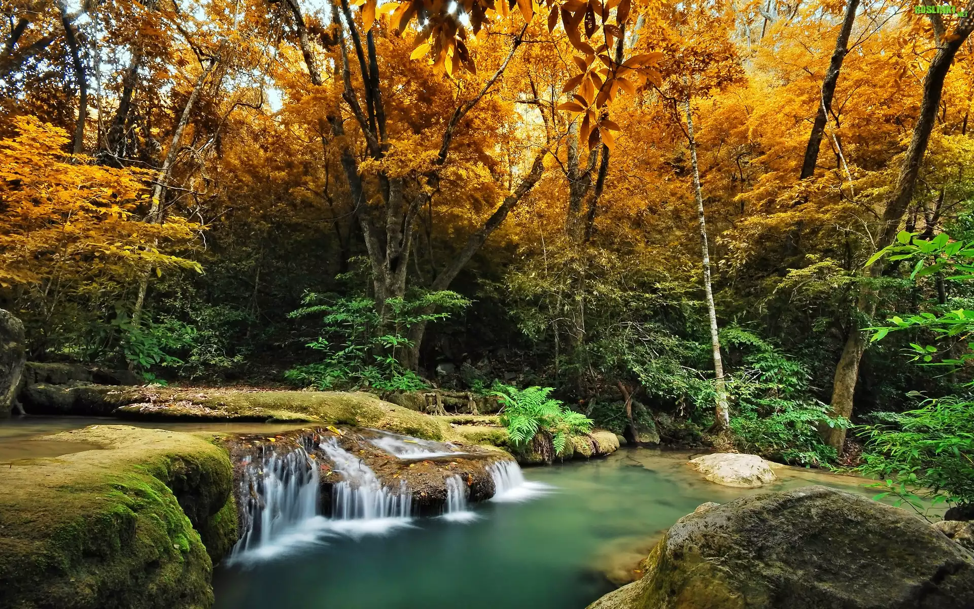Rośliny: Jesień, Drzewa, Mały, Wodospad