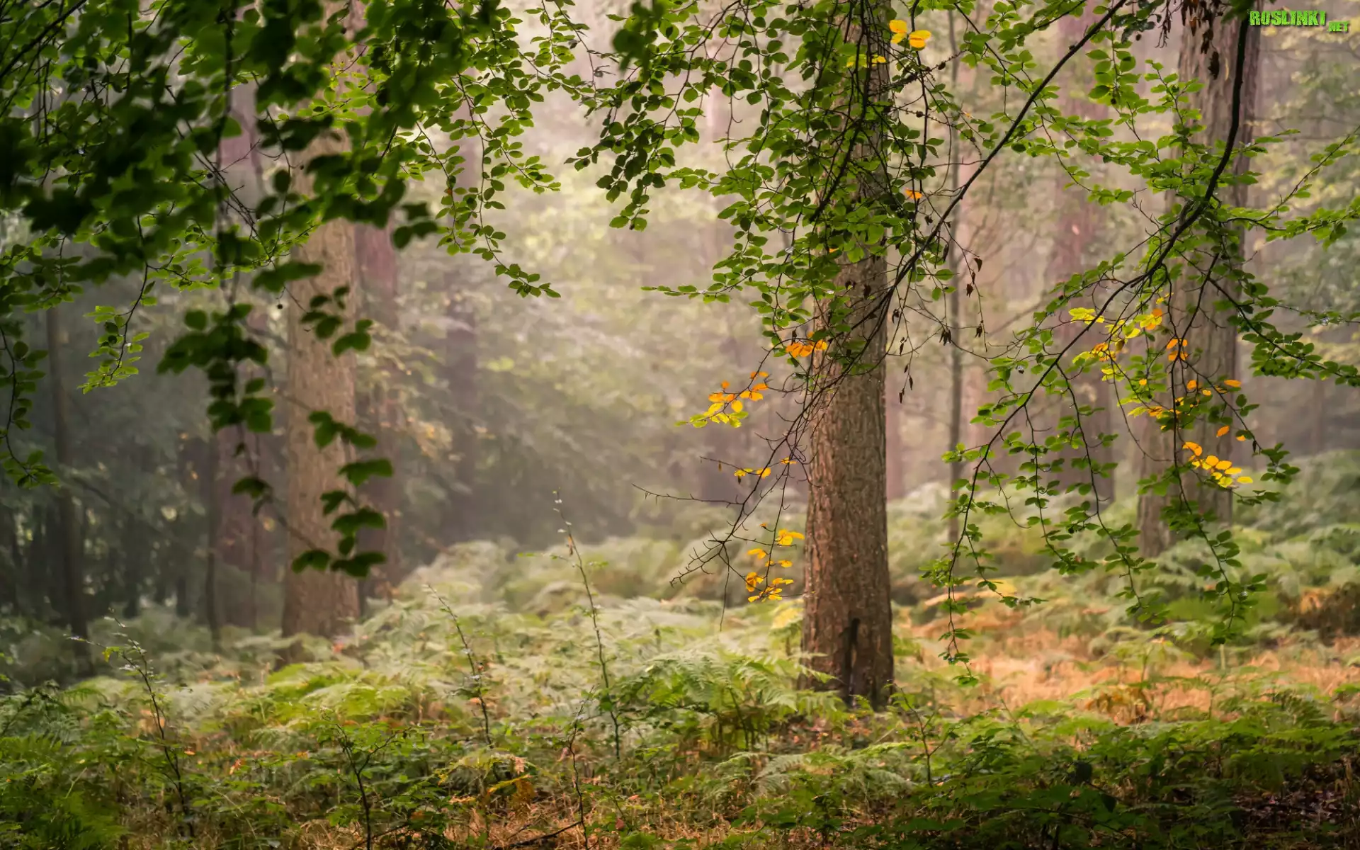 Rośliny: Jesień, Las, Drzewa, Gałęzie, Mgła, Roślinność