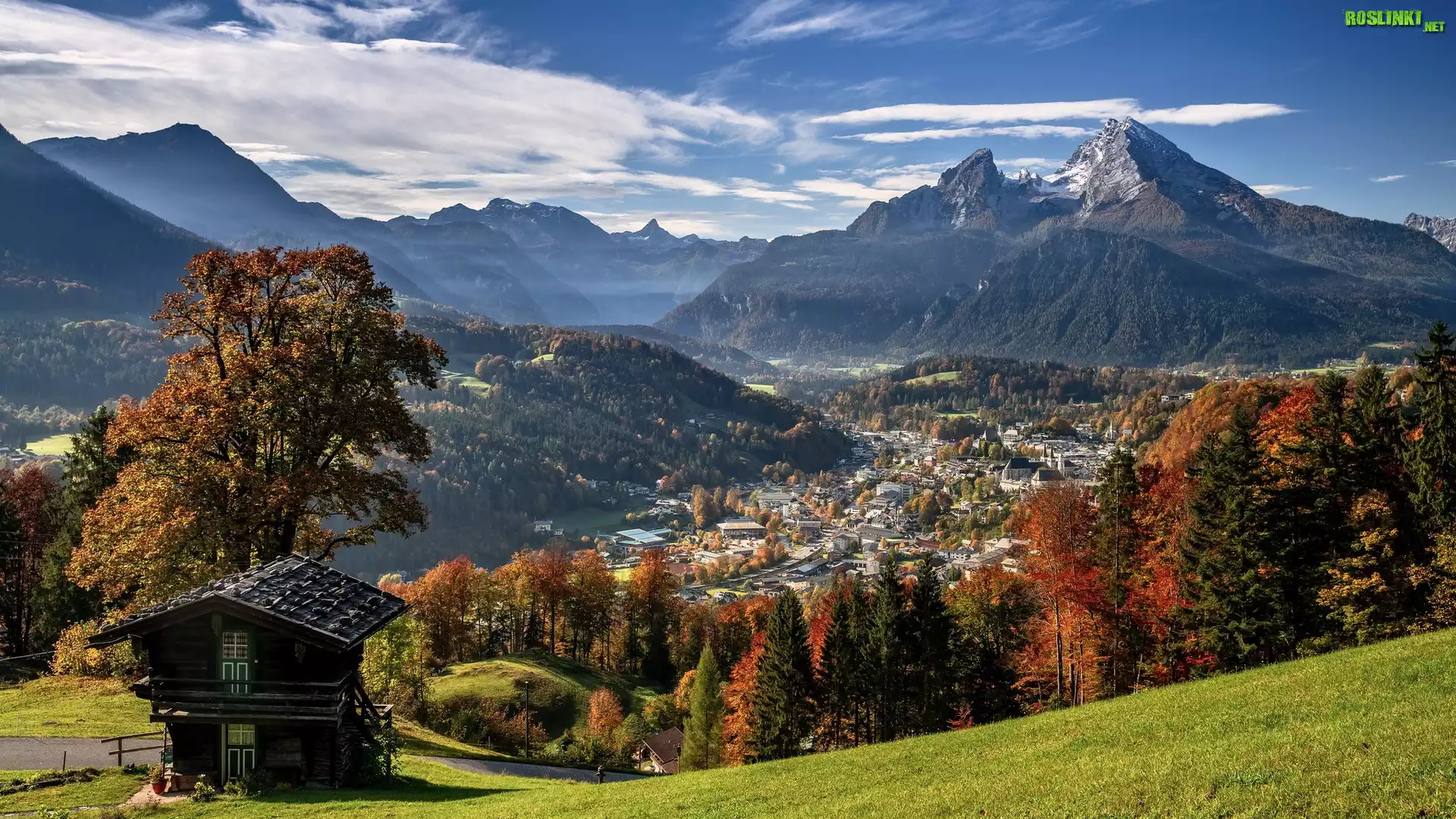 Rośliny: Jesień, Góry, Dolina, Domy, Miasteczko, Drzewa