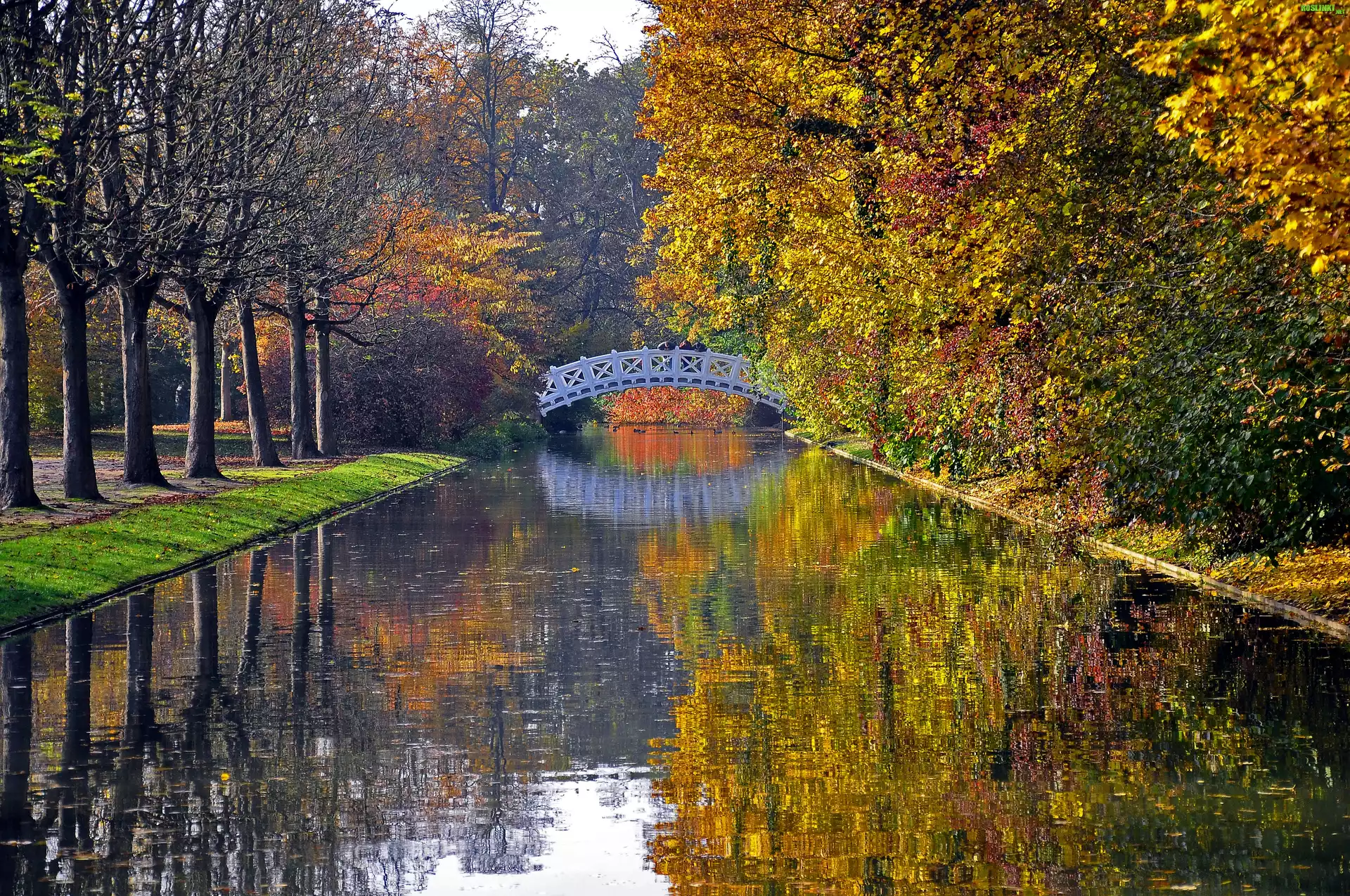 Rośliny: Jesień, Rzeka, Most, Drzewa