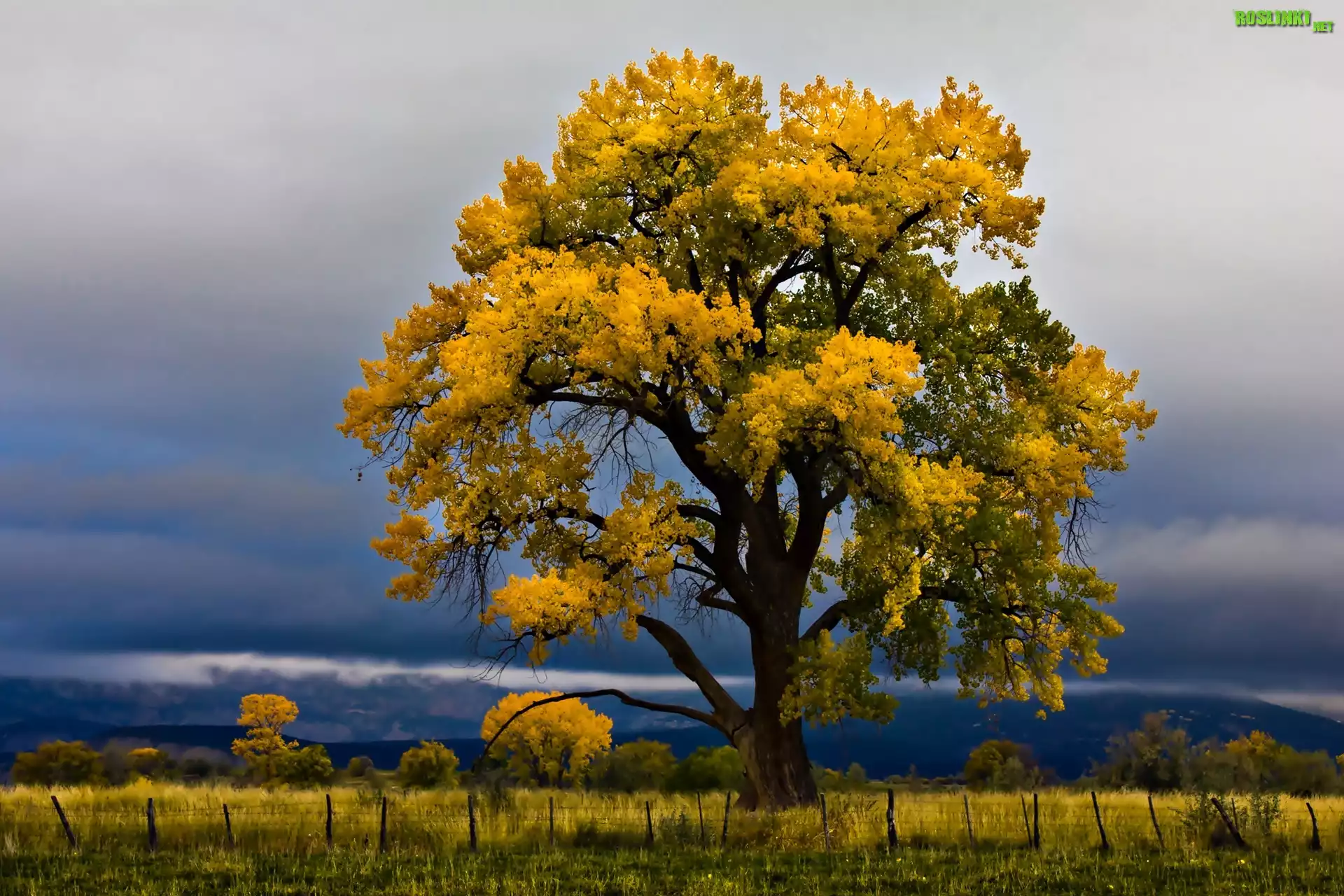Rośliny: Jesień, Drzewa, Niebo, Ogrodzenie