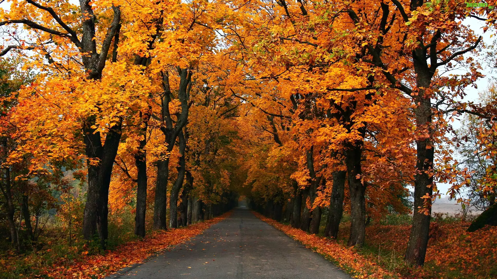 Rośliny: Jesień, Drzewa, Droga, Pożółkłe, Liście