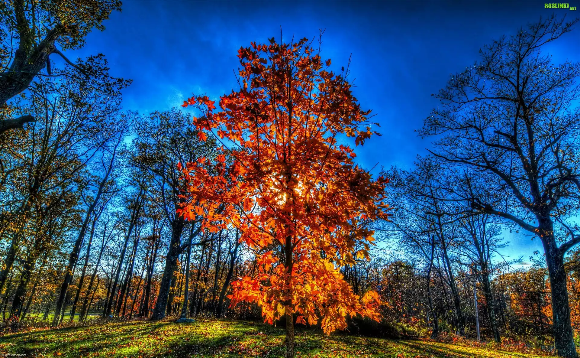 Rośliny: Jesień, Drzewa, Promienie, Słońca