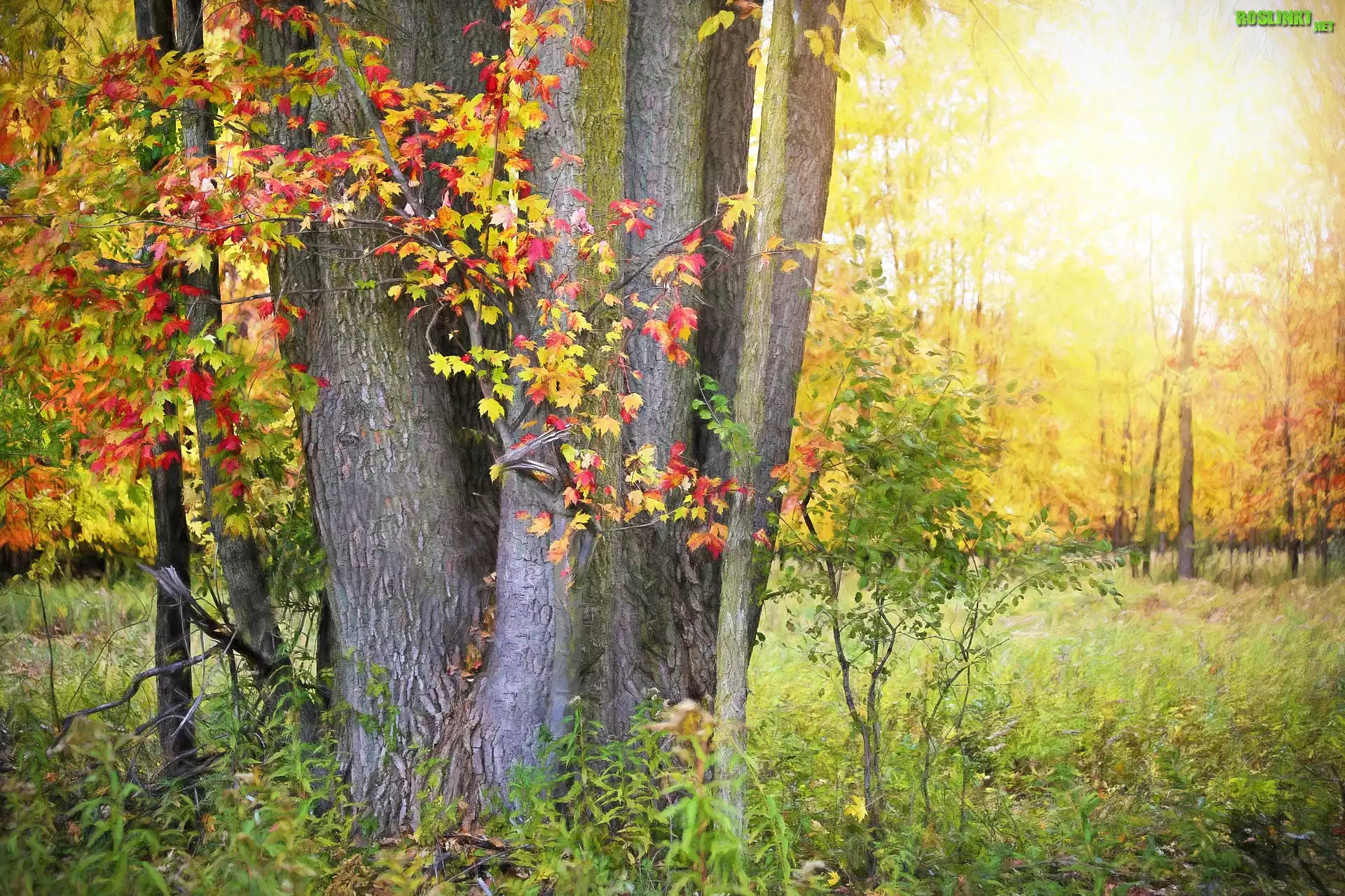Rośliny: Jesień, Drzewa, Kolorowe, Liście, Rośliny, Słońce