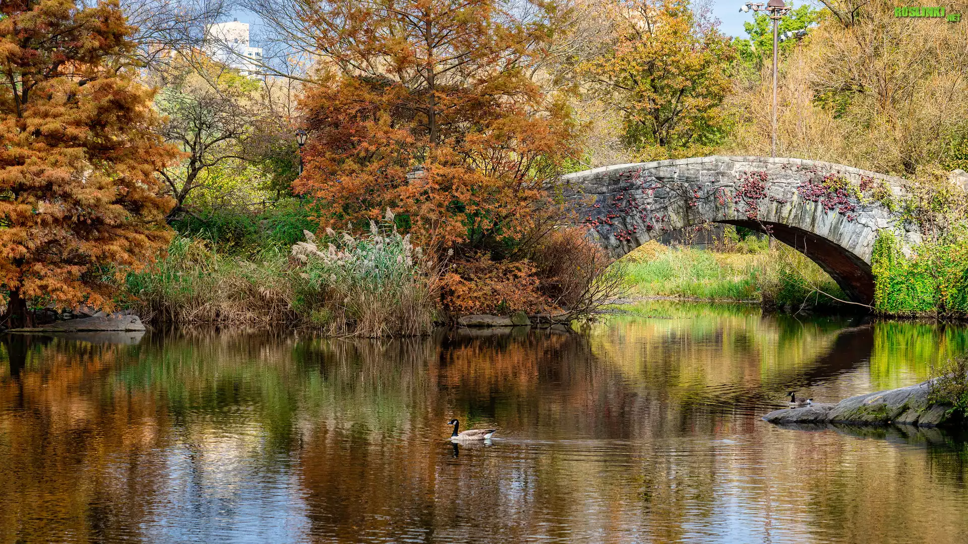 Rośliny: Jesień, Staw, Most, Drzewa, Rośliny, Kaczka