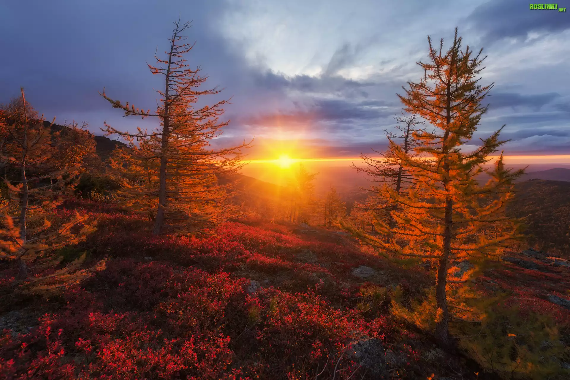 Rośliny: Jesień, Drzewa, Promienie słońca, Rośliny, Wzgórza