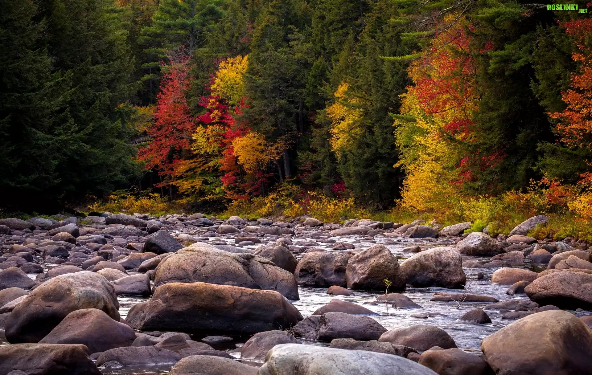 Rośliny: Jesień, Las, Kamienie, Rzeka, Drzewa