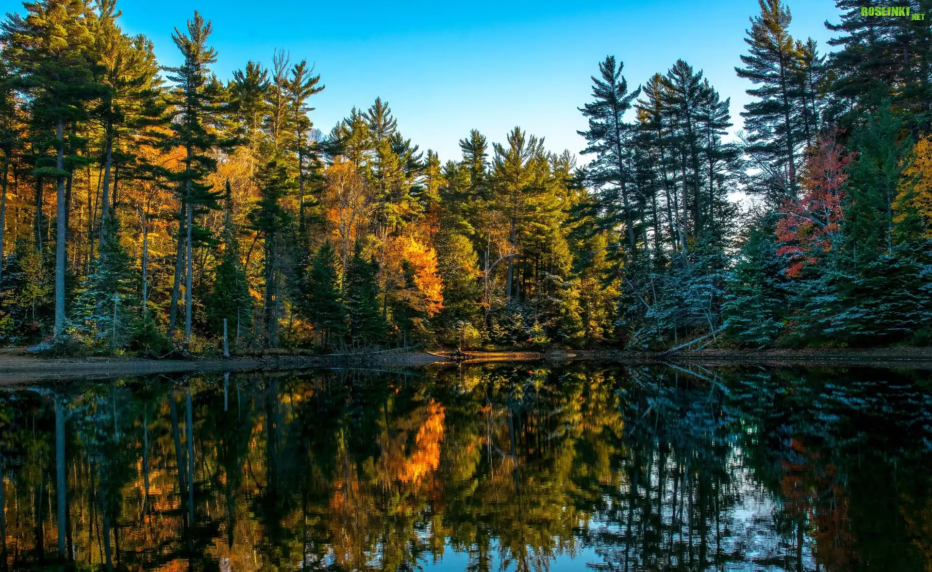 Rośliny: Jesień, Drzewa, Las, Rzeka, Odbicie