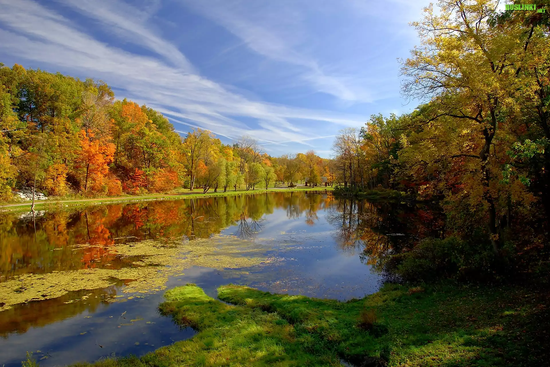Rośliny: Jesień, Chmury, Park, Rzeka, Odbicie