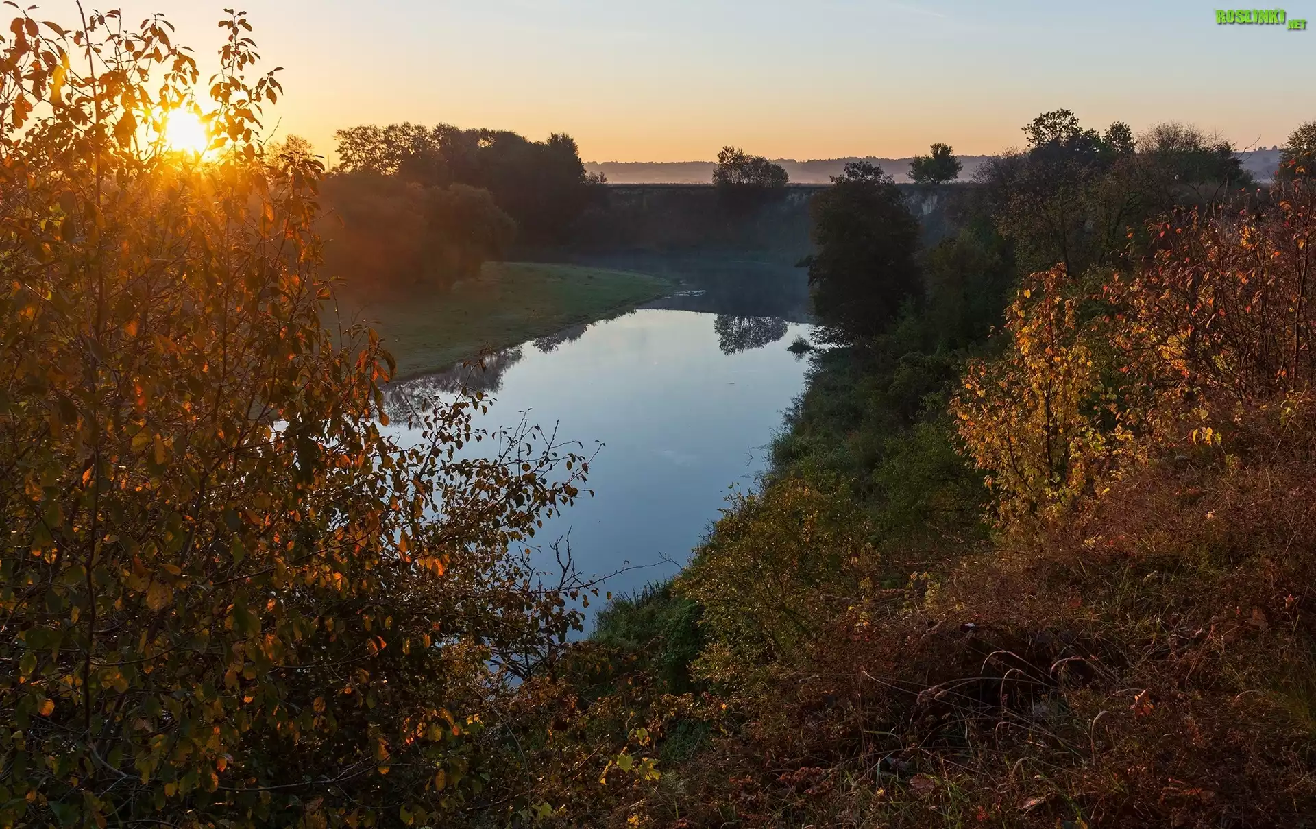 Rośliny: Jesień, Rzeka, Wschód słońca, Drzewa