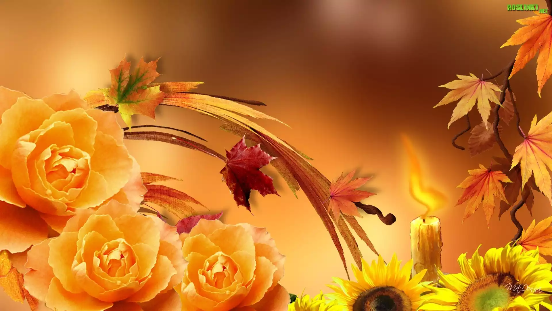 Rośliny: Jesień, Róże, Słoneczniki, Liście