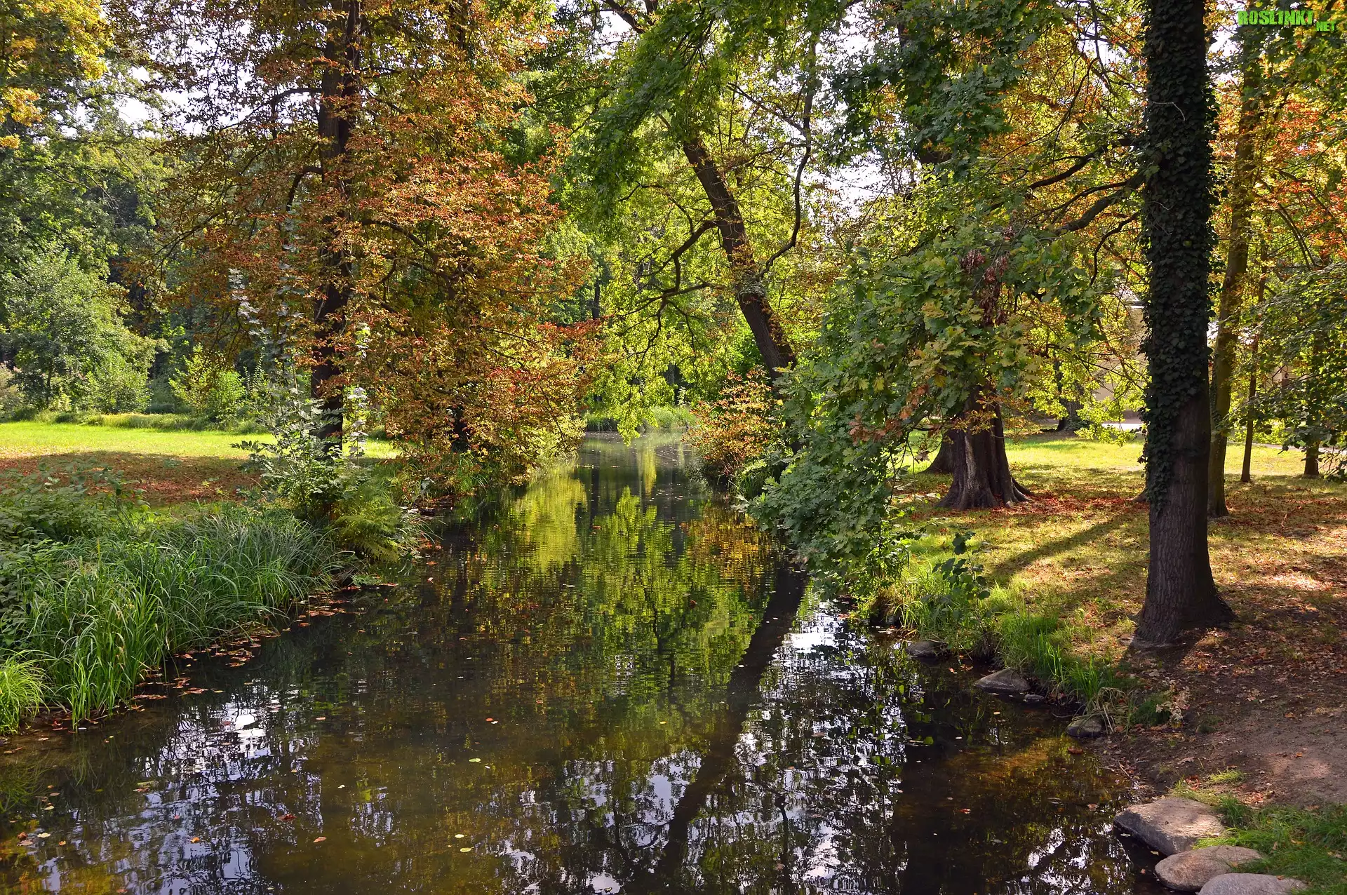 Rośliny: Jesień, Park, Drzewa, Rzeczka, Słoneczny, Dzień