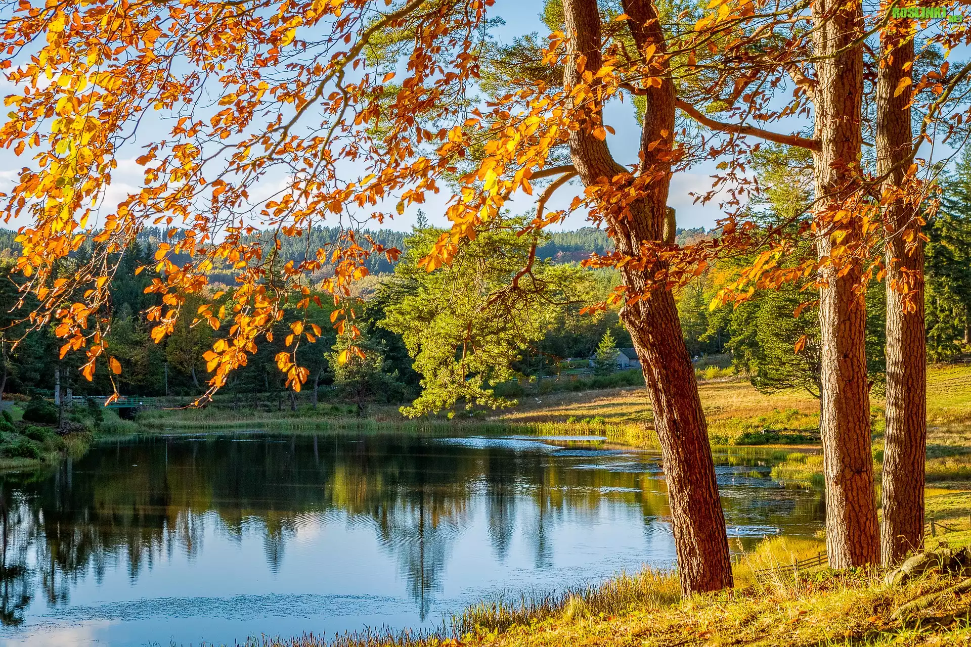 Rośliny: Jesień, Drzewa, Jezioro, Słoneczny, Dzień