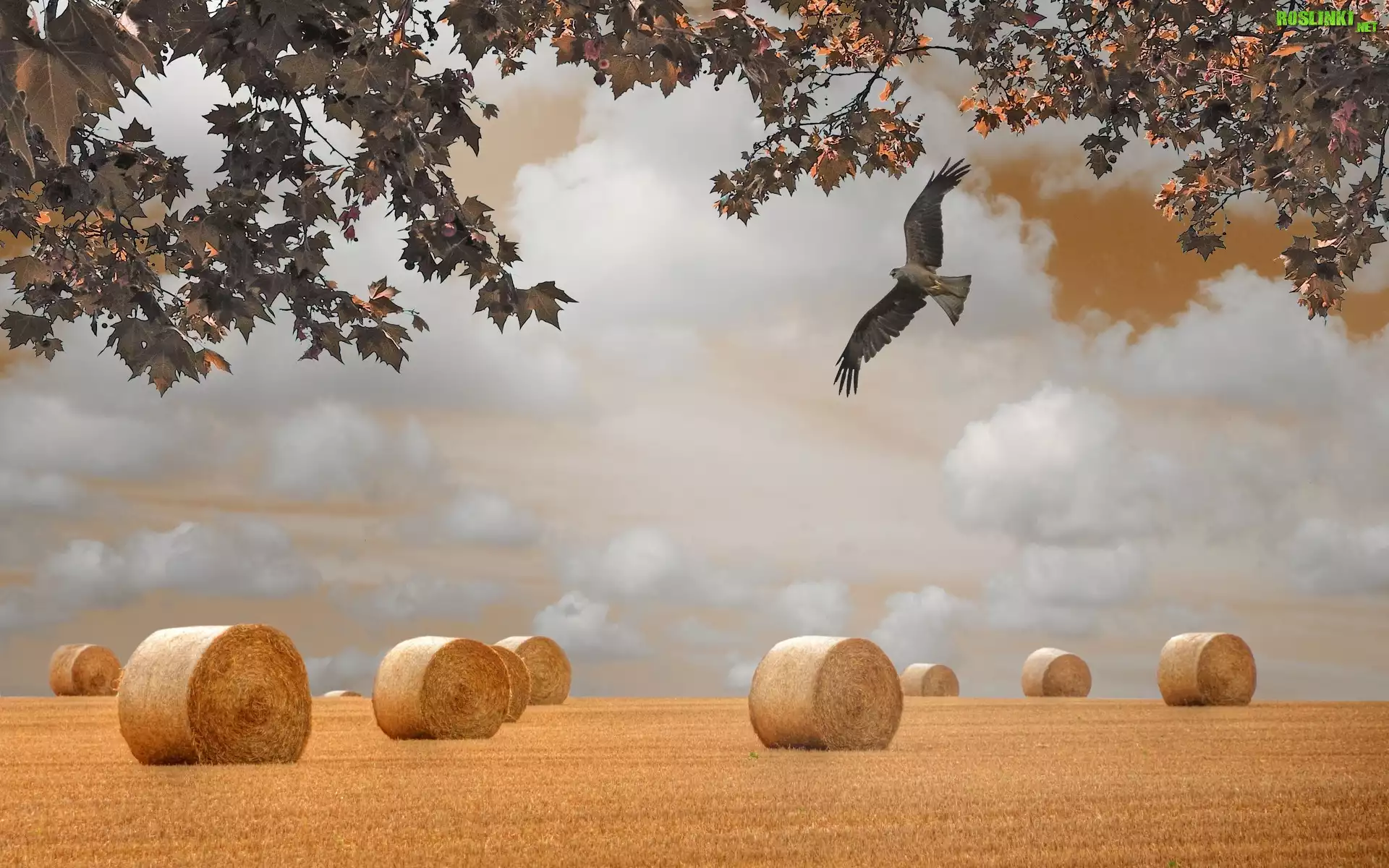 Rośliny: Jesień, Pole, Zboże, Snopy, Sokół