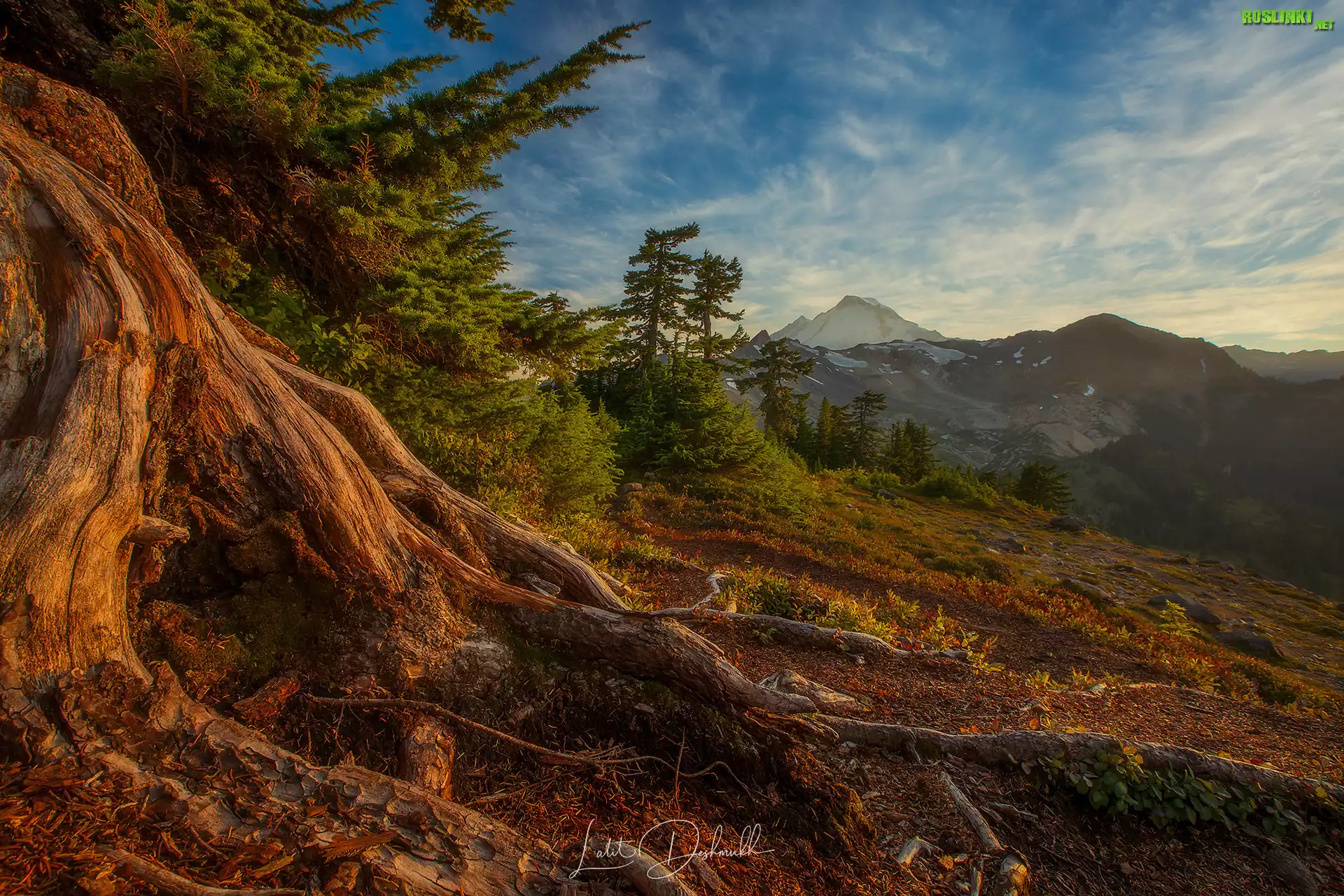 Rośliny: Góry Kaskadowe, Mount Baker, Drzewa, Korzenie, Jesień, Stan Waszyngton, Stany Zjednoczone