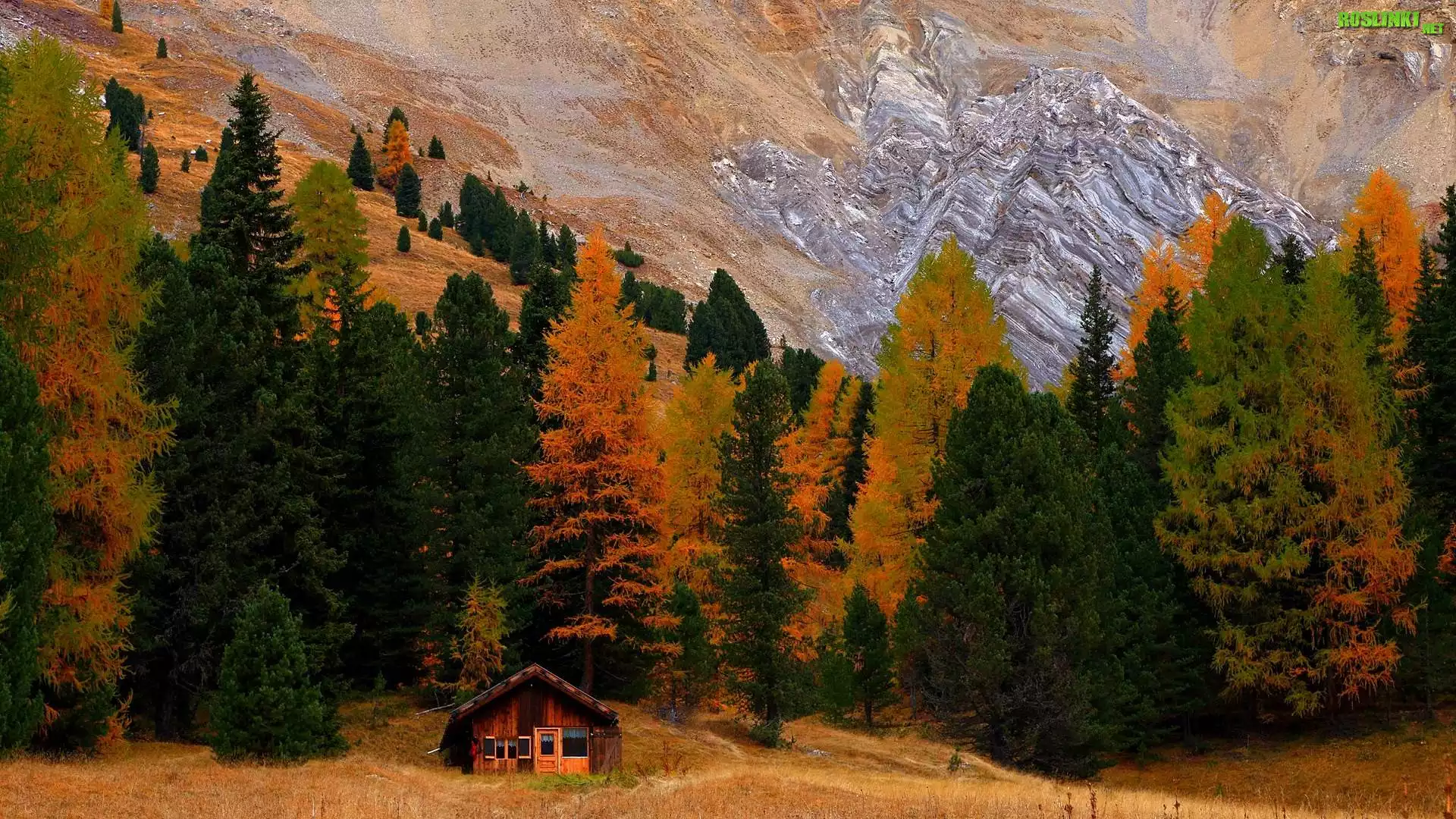 Rośliny: Jesień, Drzewa, Dom, Stok, Góry