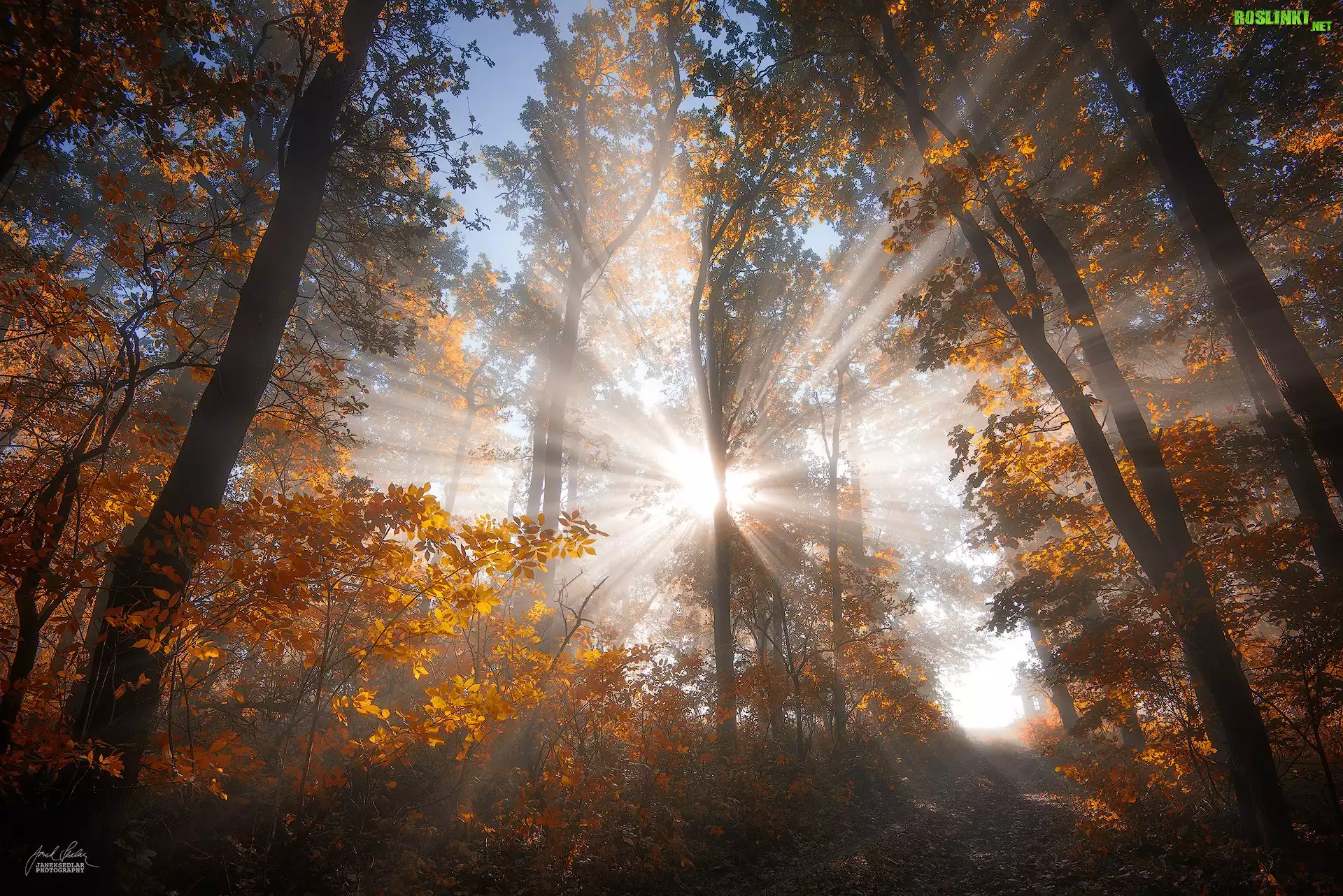 Rośliny: Jesień, Las, Przebijające, Światło, Drzewa