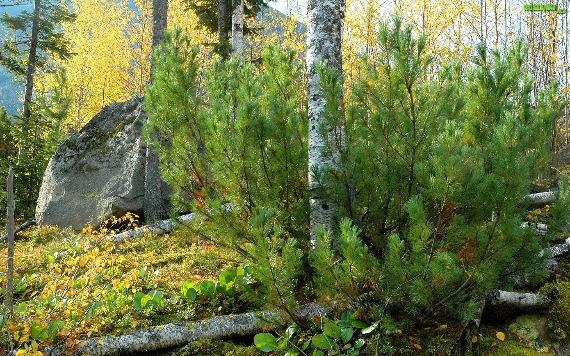 Rośliny: Jesień, Drzewa, Wielki, Głaz