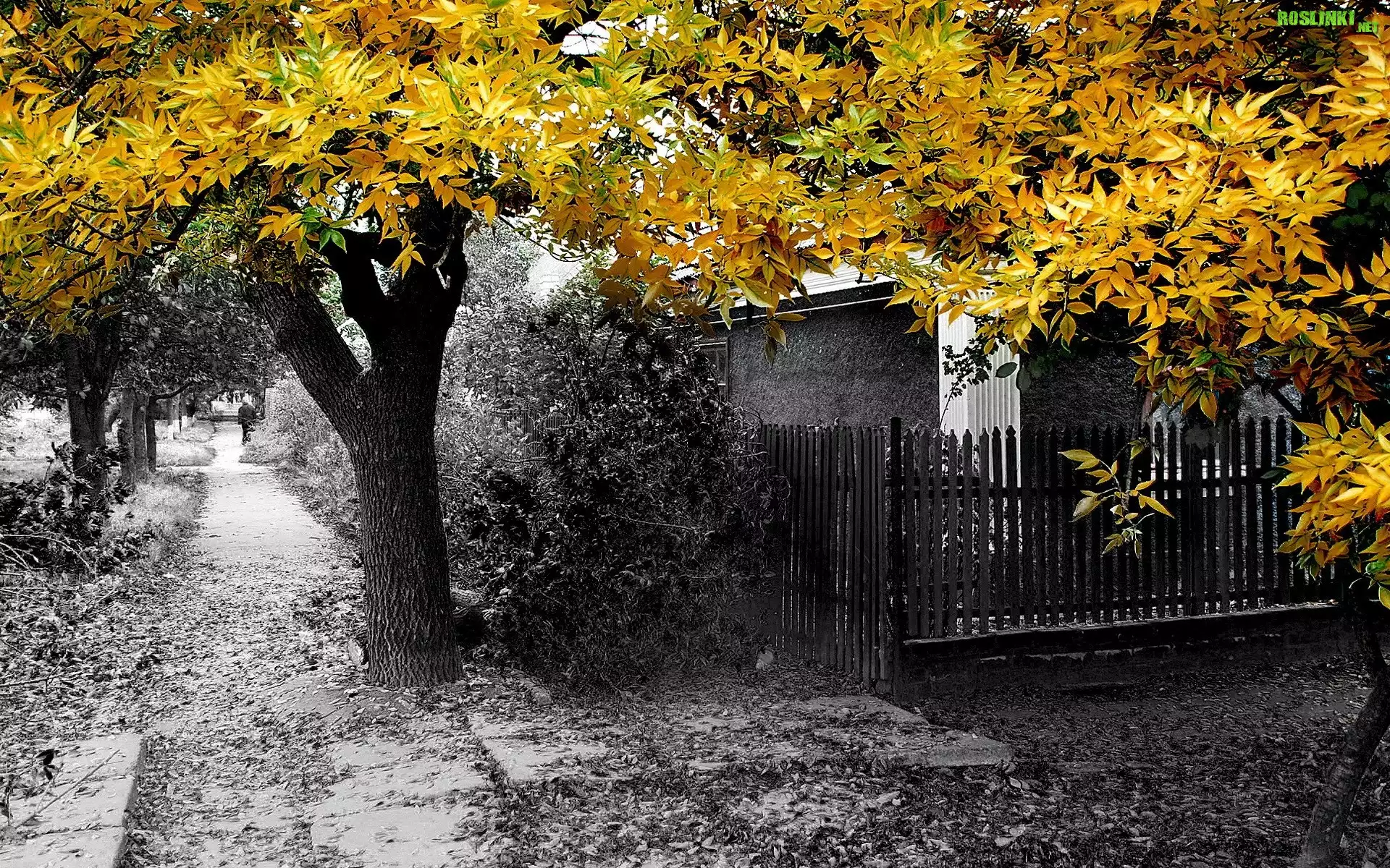Rośliny: Jesień, Drzewa, Żółto, Zielone, Liście