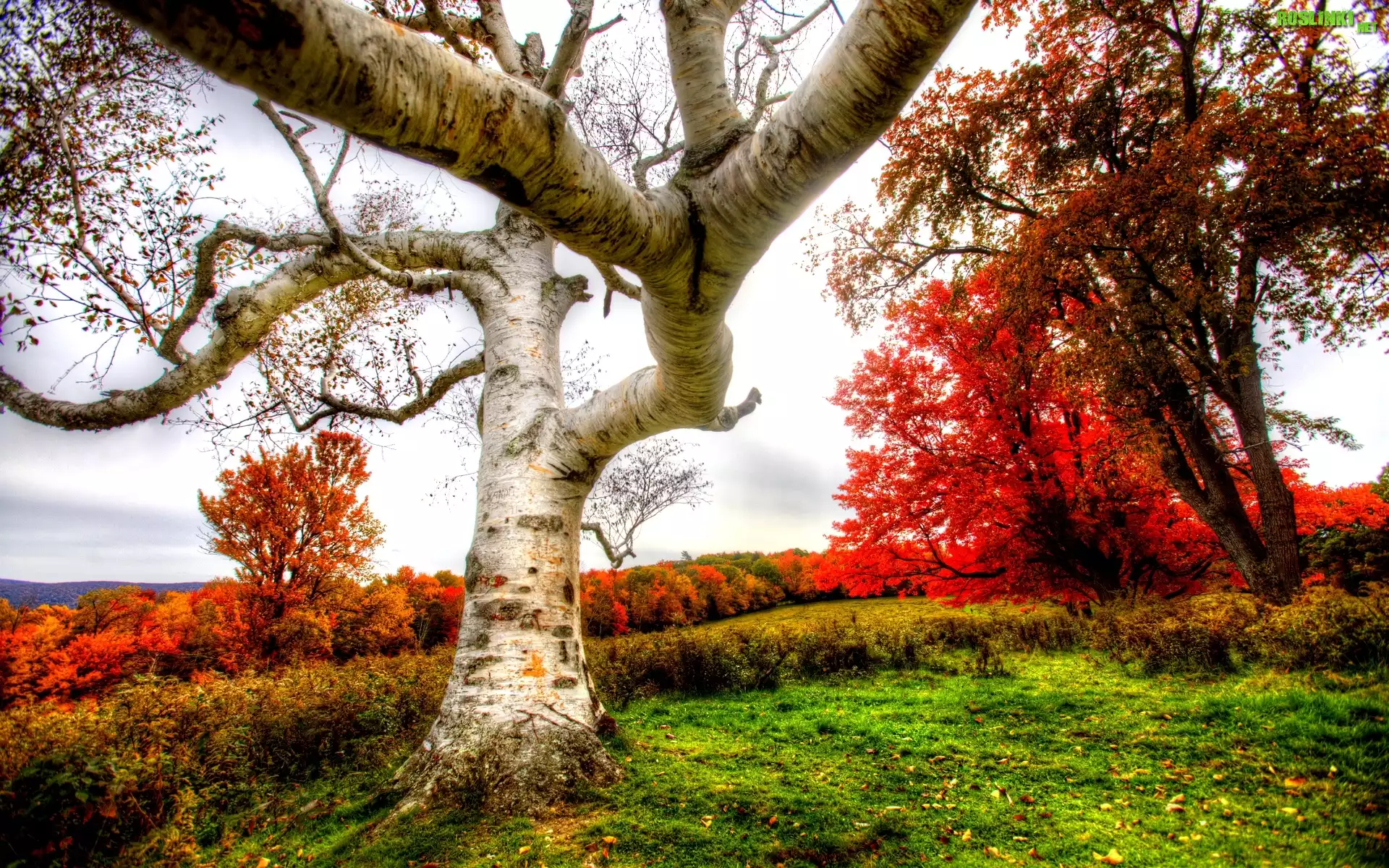 Rośliny: Jesienne, Drzewa, Biała, Brzoza