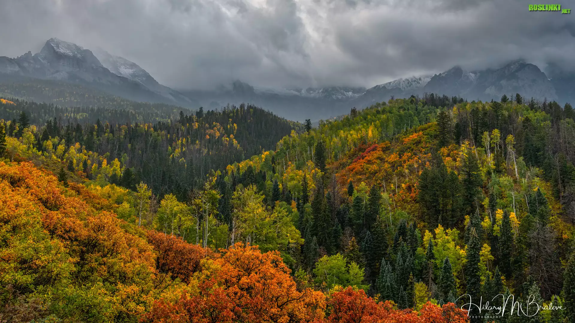 Rośliny: Góry, Jesienne, Drzewa, Ciemne, Chmury