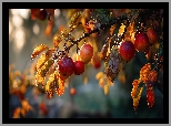 Czerwone, Jabłka, Gałązka, Jesienne, Liście, Grafika AI